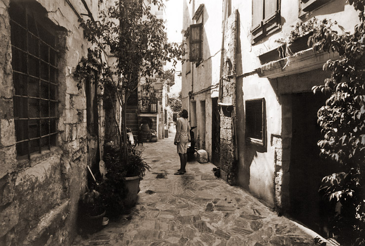 A másodikai 39 felvétel témája a szálláshelyünk (és környéke), valamint nagyobb részt a sziget régi fővárosa Hania, ahová ottlétünk alatt másodszor – ezúttal nappal – jutottunk el. Mivel vasárnap délután volt, sikerült néhány egészen kihalt, utópisztikus fotót készítenem, melyek mindegyikén csak egyetlen aranyos turista szemlélődik: a Kedvesem. Este pedig jöttek a felhők, melyek nyáron igen ritkák errefelé, és én képes voltam vacsora után lemenni állvánnyal a tengerpartra, hogy csináljak néhány rettenetesen alulexponált képet (ez utóbbi persze nem volt cél, és akkor még nem is tudtam róla – utólag: valószínű a környező utcalámpák fénye zavart bele a mérésbe).