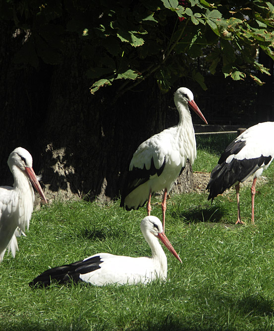 Ezek a kitömött gólyák még lépkedni is tudnak.