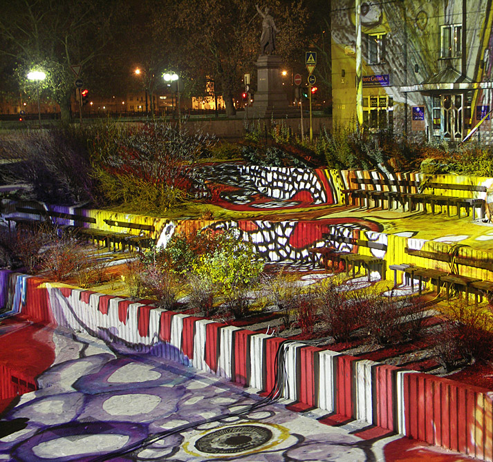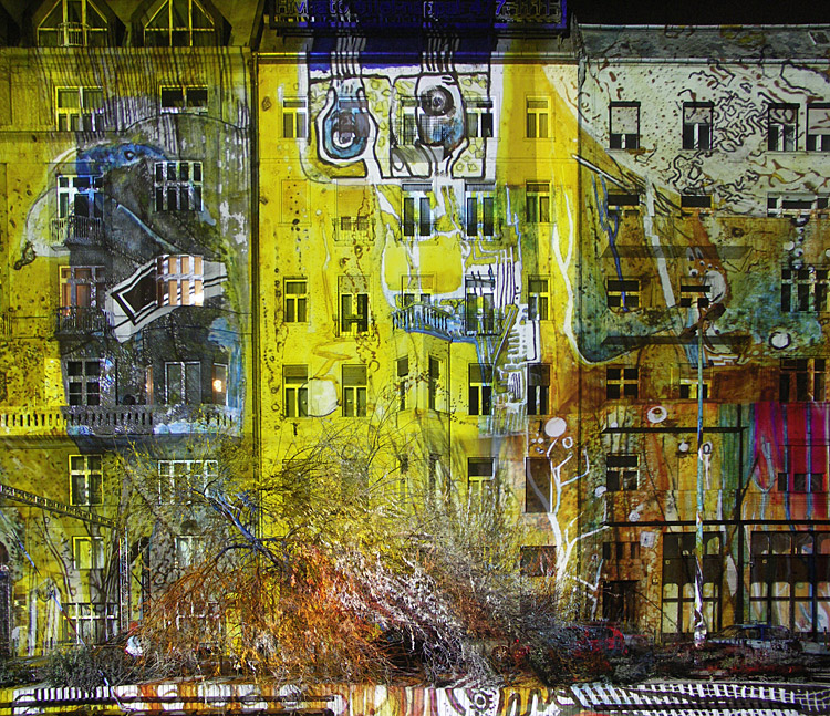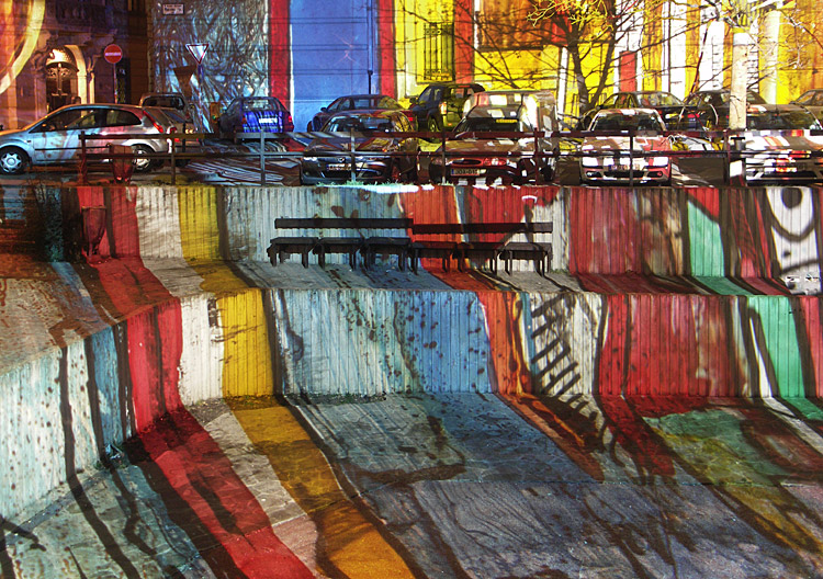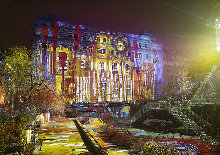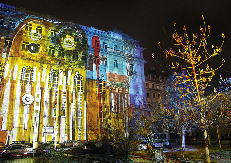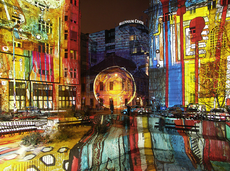 Tegnap a Ghymes koncert után még megnéztük a Fényevolúciót (Budapest, Március 15. tér – 2007. január 1-ig minden nap, sötétedéstől éjfélig). A fél órányi fényképezés alatt az ujjaim teljesen érzéstelenre fagytak. De nem bántam, kár lett volna kihagyni…