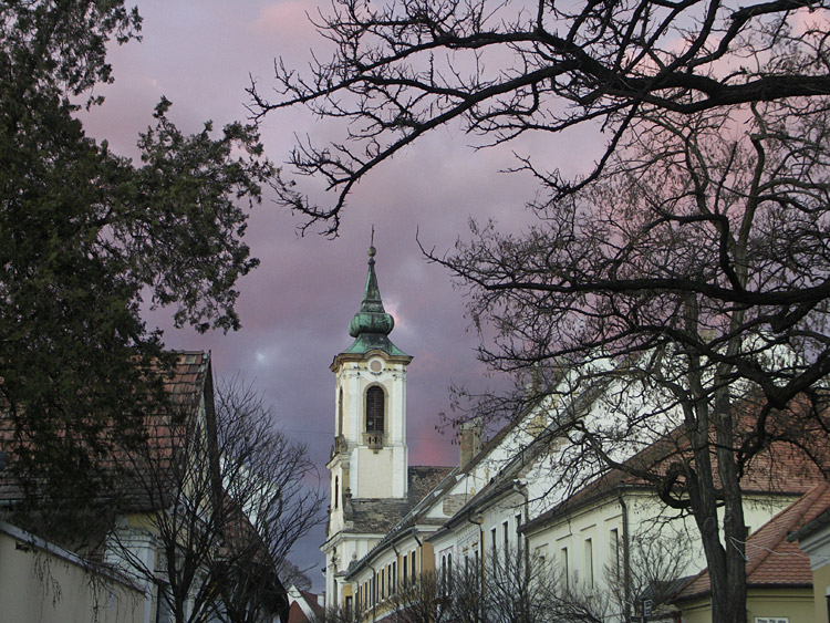 Római parti csalódásunk orvoslására egy szentendrei Szamos-féle forró csoki tűnt a legjobb megoldásnak. Kaptunk még hozzá egy bíbor naplementét is. Szentendrében nem csalódtunk…