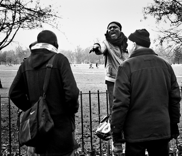 A Speaker’s Corner a londoni Hyde Park észak-keleti csücskében található nyilvános beszélde. Amikor arra jártam, legalább 10 szónok tartott előadást, kisebb-nagyobb sikerrel. Az emelvény elengedhetetlen kellékük, és úgy vettem észre, szeretik ha fotózzák őket.