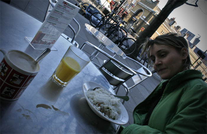 Némi magyarázat a fotókhoz: Borough Market, a Temzétől délre található fedett piac csarnok, friss hallal, zöldséggel, jó szagokkal stb. Végre találtam egy olyan helyet, mint otthon: a büfében zsíros viaszosvászon terítő, kecsap-mustárral, és a környékbeli építőmunkások ott falatoznak és teáznak. Az ÁNTSZ többszörösen is bezárathatná az egész helyet… :)