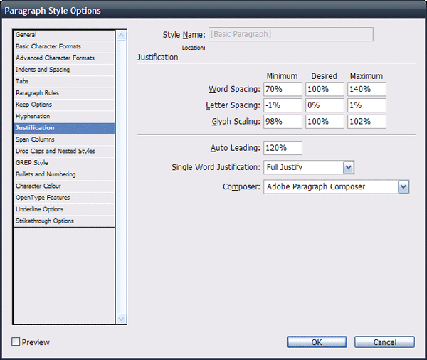frissítve (2010. 06. 18.): Xants írja hozzászólásában: „Ne vegyétek orákulumnak ezt a beállítást! Az az igazság, hogy ezt minden betűnél és betűfokozatnál el kell (kéne) végezni, ha igazán jó munkát akarsz kiadni a kezed közül. Ezt én minden esetben, ha könyvet, újságot, folyóiratot tervezek, megcsinálom, mert még izgalmas is. Napilapnál ezt elvégeztük külön-külön a különböző fokozatú címsorokra is, ami nem volt kis munka, de nagyon meghálálta magát.”