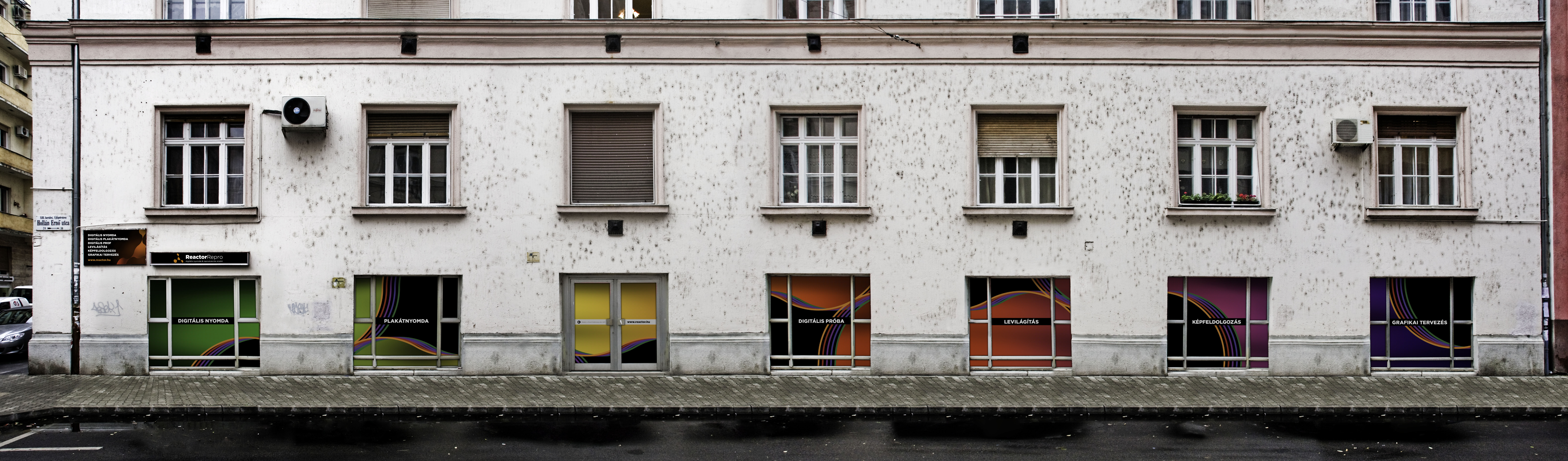 Sajnos az alábbi látványterveken ábrázolt állapot valószínűleg soha nem válik valósággá, mivel a 13. kerületi főépítész úr szerint nem illene a városképbe.* A tervek szerint az ablakdekorációt One Way Vision fóliára nyomtuk volna…