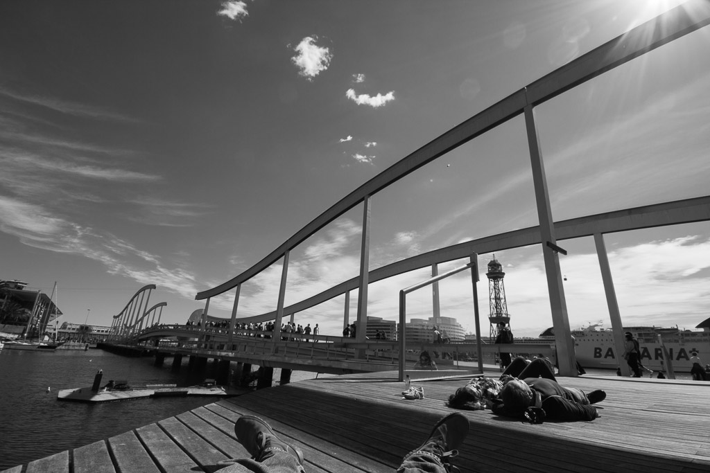 Remek szállásunk a külvárosban (vagy legalábbis a belvárostól messze) volt, közvetlenül egy metrómegállónál. „Hallom, hogy magyarok vagytok, akkor nem erőlködöm az angollal” – szólalt meg érkezésünkkor Orsi, a félig magyar, félig spanyol és egészen kedves recepciós. Rövid pihenő után sétálni indultunk, végül egy kis buszozás után Barcelona hangulatos kikötőbjében kötöttünk ki – gyönyörű tavaszi idő volt, idilli hangulat.