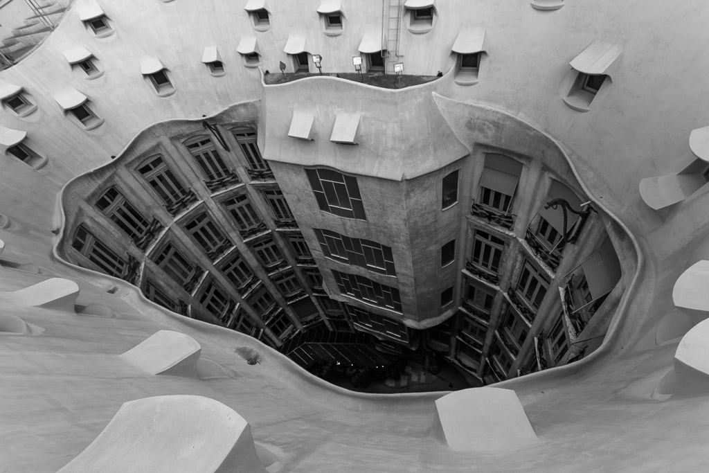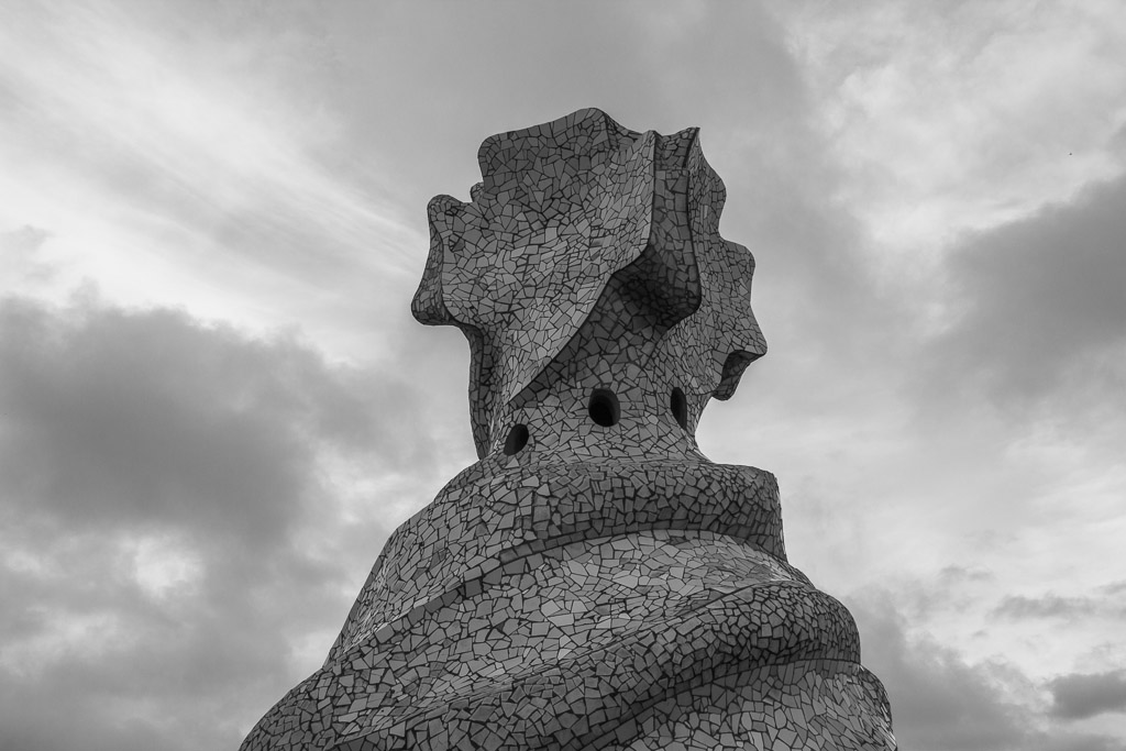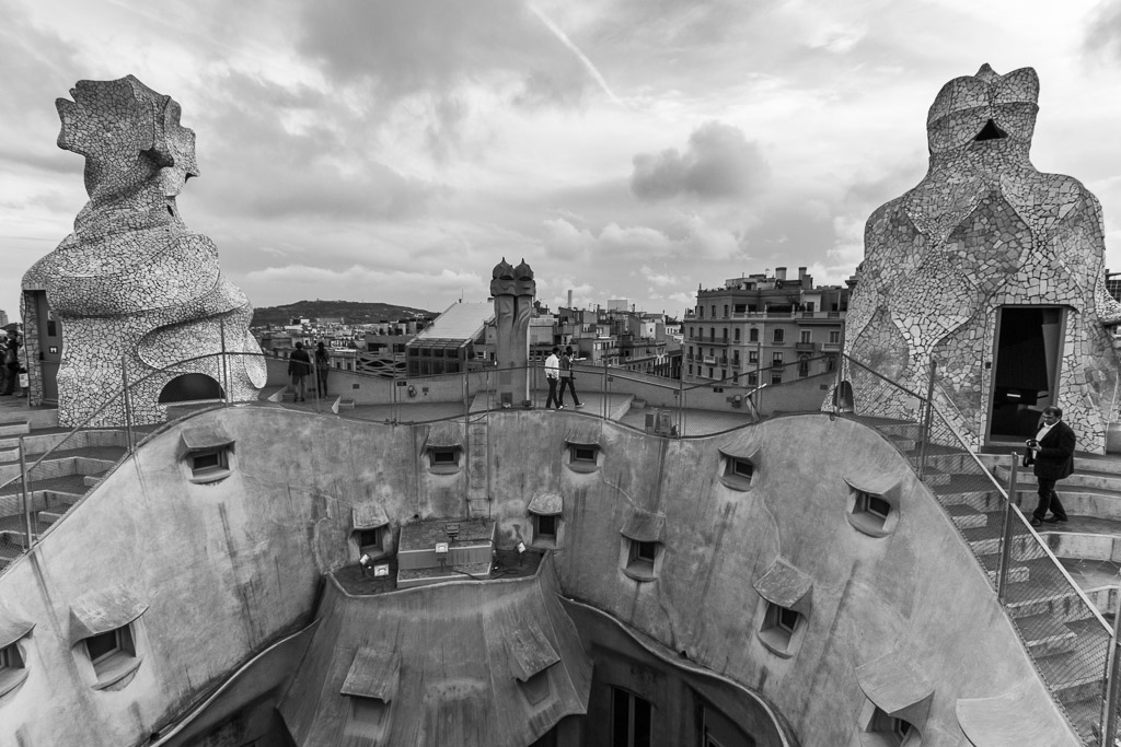 Erre a napra a Güell parkot céloztuk be, és hazafelé még a Casa Milà-t is útba ejtettük. Mindkettő – akárcsak Barcelona nevezetességeinek nagy része – Antoni Gaudí nevéhez fűződik. Lenyűgözőek épületeinek organikus formái, nagyságrendekkel nagyobb élmény bennük bolyongani és gyönyörködni, mint a mai modern épületek többségében. Ahogy Ági barátnőnk megjegyezte a harmadik napon (a Casa Batlló-ban): olyan, mintha egy cet gyomrában lennénk (leszámítva persze néhány kellemetlen körülményt, például hogy ott nem lennének ablakok) – de erről majd legközelebb…