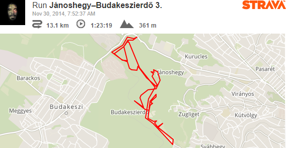 (Ugyan feltehetően nem a legfinomabb, de mégiscsak a legfontosabb kalács, ami a térdemben van; ezért a múlt heti szenvedésem után tegnap a Decathlonban beszereztem egy pár Aptonia S-200-as térdvédőt. Először kicsit kényelmetlennek tűnt, de jólesően melegítette a térdeimet; a 10. km-nél ennek ellenére megint elkezdett fájni a bal – de szerencsére nem olyan intenzíven, mint egy hete, gond nélkül célba értem.)