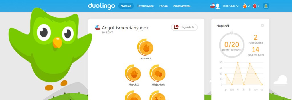 Nem tudom, hogy miért maradt ki az őszi app-szemlémből, pedig már legalább fél éve elégedetten használom a Duolingo-t hiányos angol nyelvtudásom gyarapítására (amúgy magyarról egyelőre nincs is más választék, csak az angol). Nem hibátlan (az egyik gyengéje a hangfelismerés), de nagyon szeretem, mert napi rendszerességgel pár perc gyakorlásra késztet – nagyjából negyed óra alatt két lecke elvégezhető –, ráadásul szép a felülete: weblap / Android.