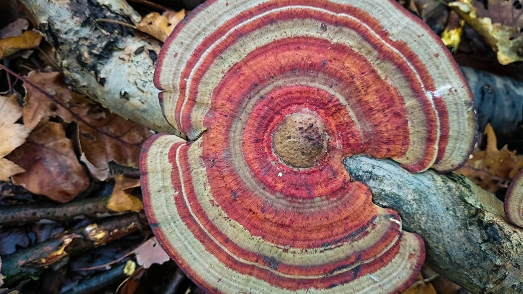 Most már nem fogadtam szót a figyelmeztető táblának, hajtott a kíváncsiság, hogy vajon csak kint felejtették-e; bemerészkedtem az életveszélyesnek minősített erdőbe. Ha életveszélyben nem is éreztem magam (gondolom, amelyik ág le akart törni, az már letörött, és amelyik fa ki akart dőlni, az már kidőlt), de futni nem sokat tudtam; utam felén itt is a múlt hétről ismerős, állapot fogadott: leszakadt ágak, gallyak és kidőlt fák mindenfelé. De az egyik legjobb dolog az egészben, hogy ezt is tudtam élvezni, és akkor se lettem ideges, mikor a turistautak.hu sokadik tréfájaként semmilyen út nem volt a jelölt helyen, és a szinte járhatatlanul bozótos terepen épp egy tüskés ág öleléséből próbáltam kiszabadítani magam. „Kárpótlásul” kaptam ajándékba napsütést, nagy szelet, kis hóesést, és gyönyörű gombákat.
