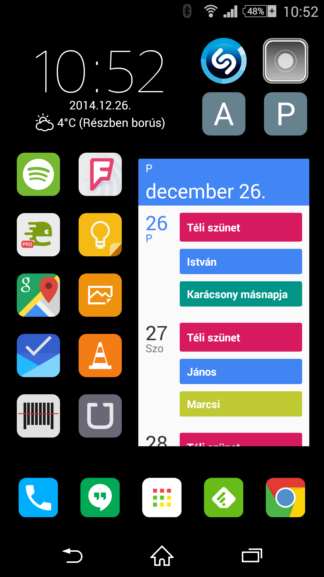 Amúgy pár napja átálltam Gmailről Inboxra (van hiányérzetem, de nagyon tetszik, írok majd róla bővebben is), amihez nincs widget, és rájöttem, hogy nem is kell, csak feleslegesen foglalná a helyet, mivel úgyis jön értesítés az új levelekről, nem kell, hogy állandóan szem előtt legyenek a már olvasottak – így örömömre szolgál, hogy tovább egyszerűsödött a kezdőképernyőm (vesd össze ezzel).