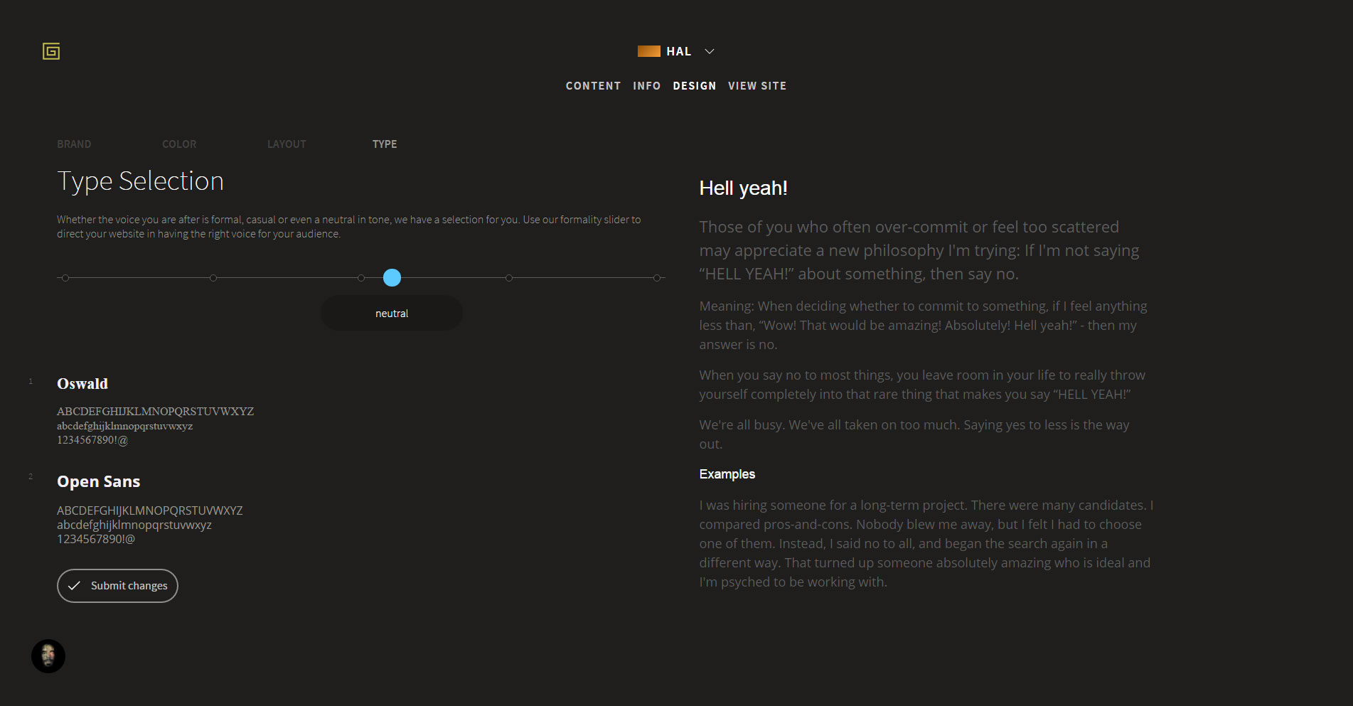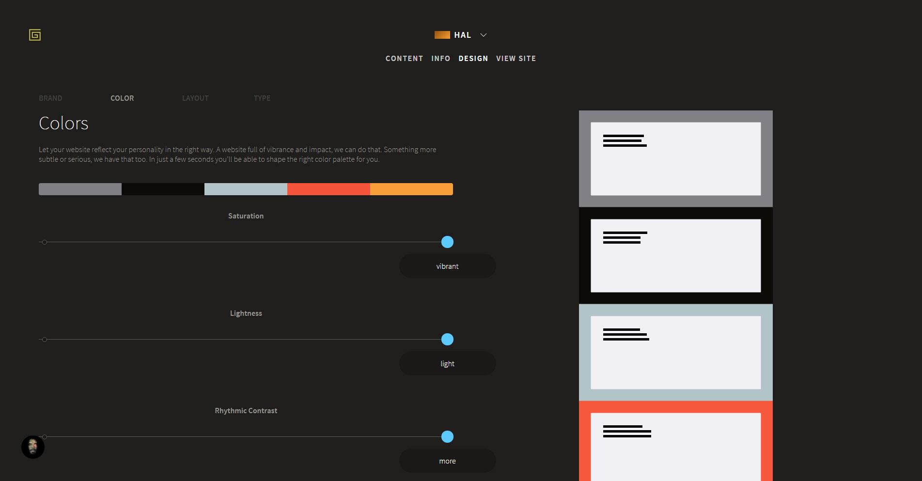 Az ötlet jó, és ennek tálalása, felvezetése is volt annyira jó, hogy bő egy éve beszálltam alapító tagként 96 dollárral. Az első csalódás akkor ért, amikor a beígért késő tavaszi start helyett még ősszel is csak a béta fázisba történő bekapcsolódási lehetőségekről szóló hírek jöttek. November 2-án végre én is csatlakozhattam a rendszerhez, és kipróbálhattam, milyen az „intelligens weblap készítő”. Pontosabban ebben a reményben álltam neki a próbának, de épp az ellenkezője bizonyosodott be. Értem, hogy béta még (bár nem értem, hogy lehet ennyire elkalibrálni az időt, hogy késő tavasz helyett még év végén sincs egy elfogadhatóan működő rendszer), de arról, ami sokadik próbálkozásra is csak egy olyan értékelhetetlen valamit hoz létre, mint amilyen az első képen (vagy ide kattintva) látható, még írni sincs kedvem bővebben (amúgy a dizájnt a következő négy képen látható oldalakon keresztül lehet konfigurálni):