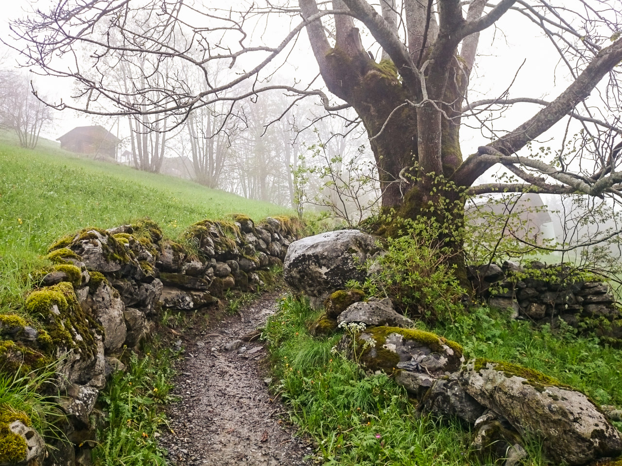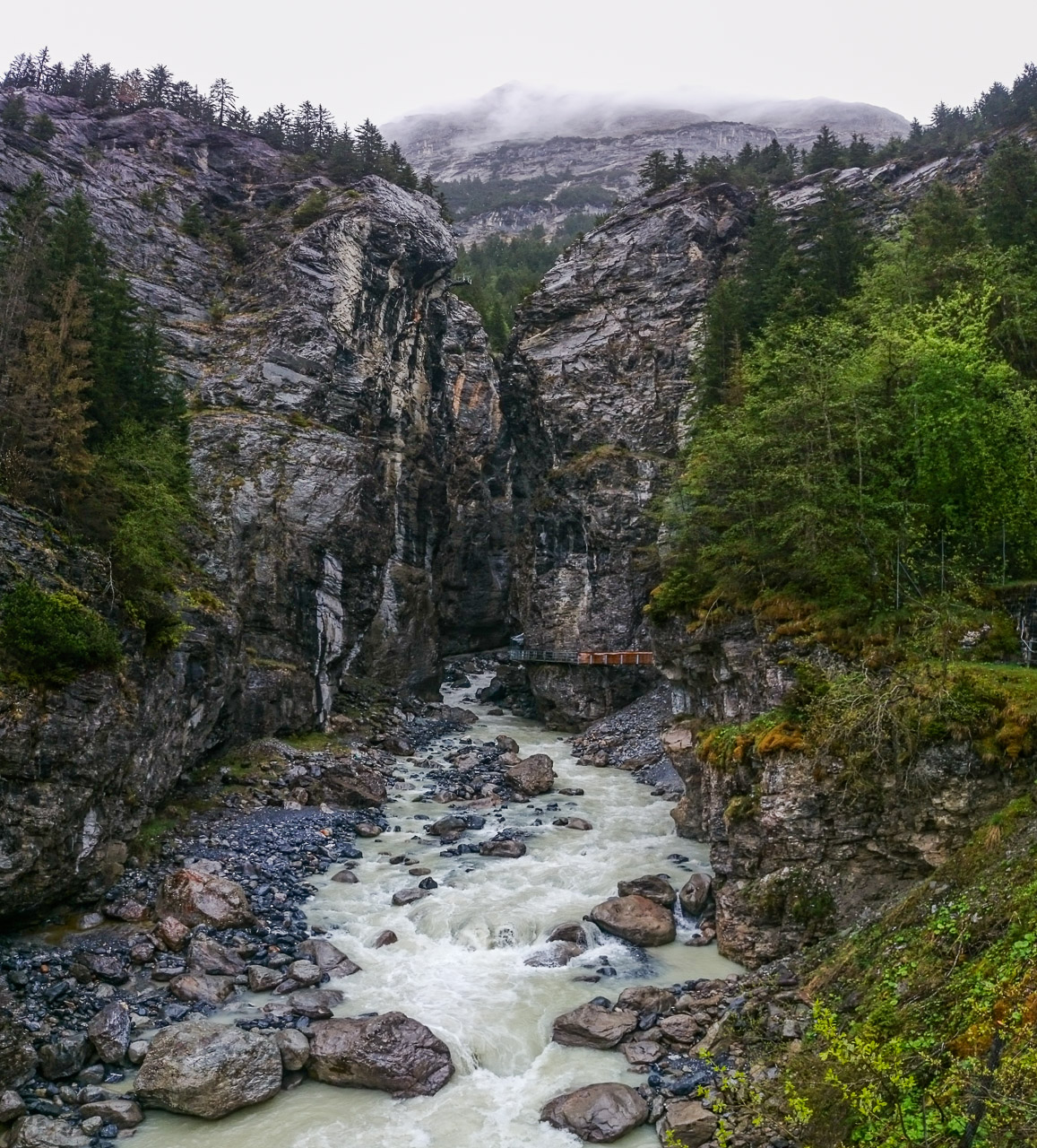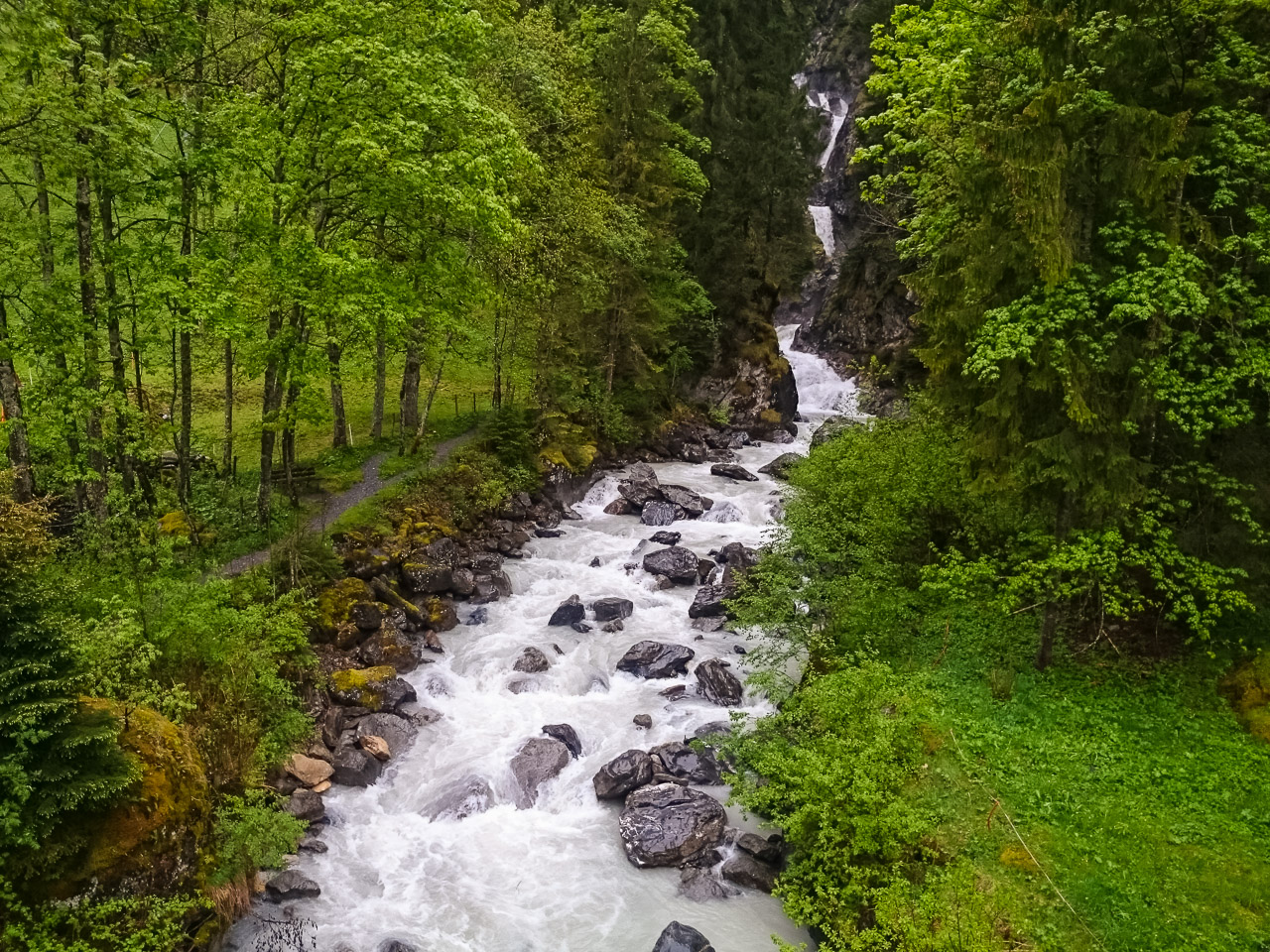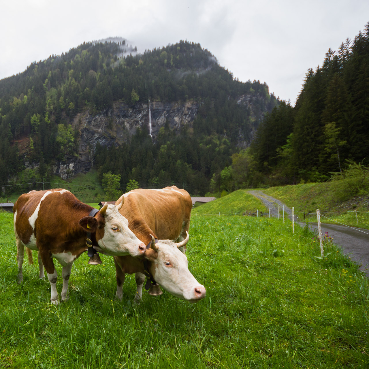Ezen a napunkon esett a legtöbb eső, mégis ezen a napon fotóztam a legtöbbet – hisz ismét meglehetősen fotogén helyeken jártunk –, és talán ezért is utoljára a hat éves tükörreflexesemmel, ami végleg felmondta a szolgálatot a nedves környezetben. De akárcsak Korzikán az állványom elvesztése, itt Svájcban a fényképezőgépem kipurcanása is felszabadító élmény volt – ismét eggyel kevesebb kacat van az életemben (erről részletesen majd egy későbbi bejegyzésben). A szívecskés képet önállóan készítette a nedves zsebemben csúszkáló (vízálló) telefonom – rögtön utána pedig következik egy vízeséses kép, ami az utolsó fotóm a Canon 550D-vel.