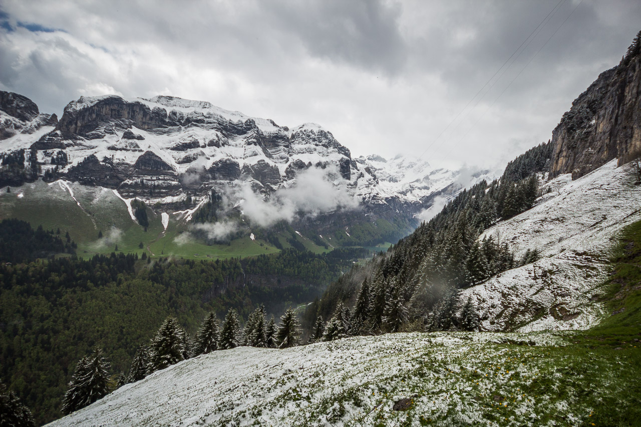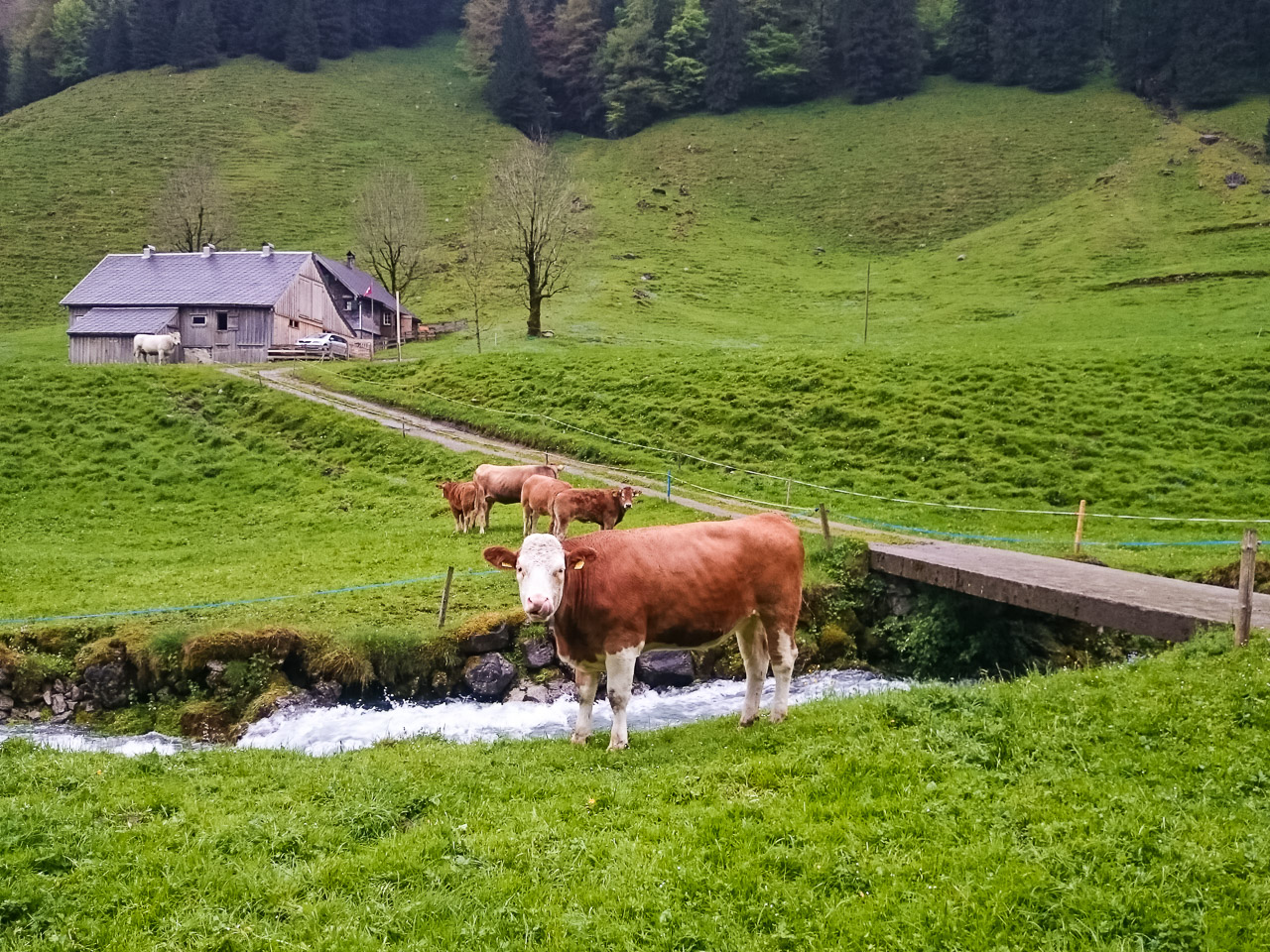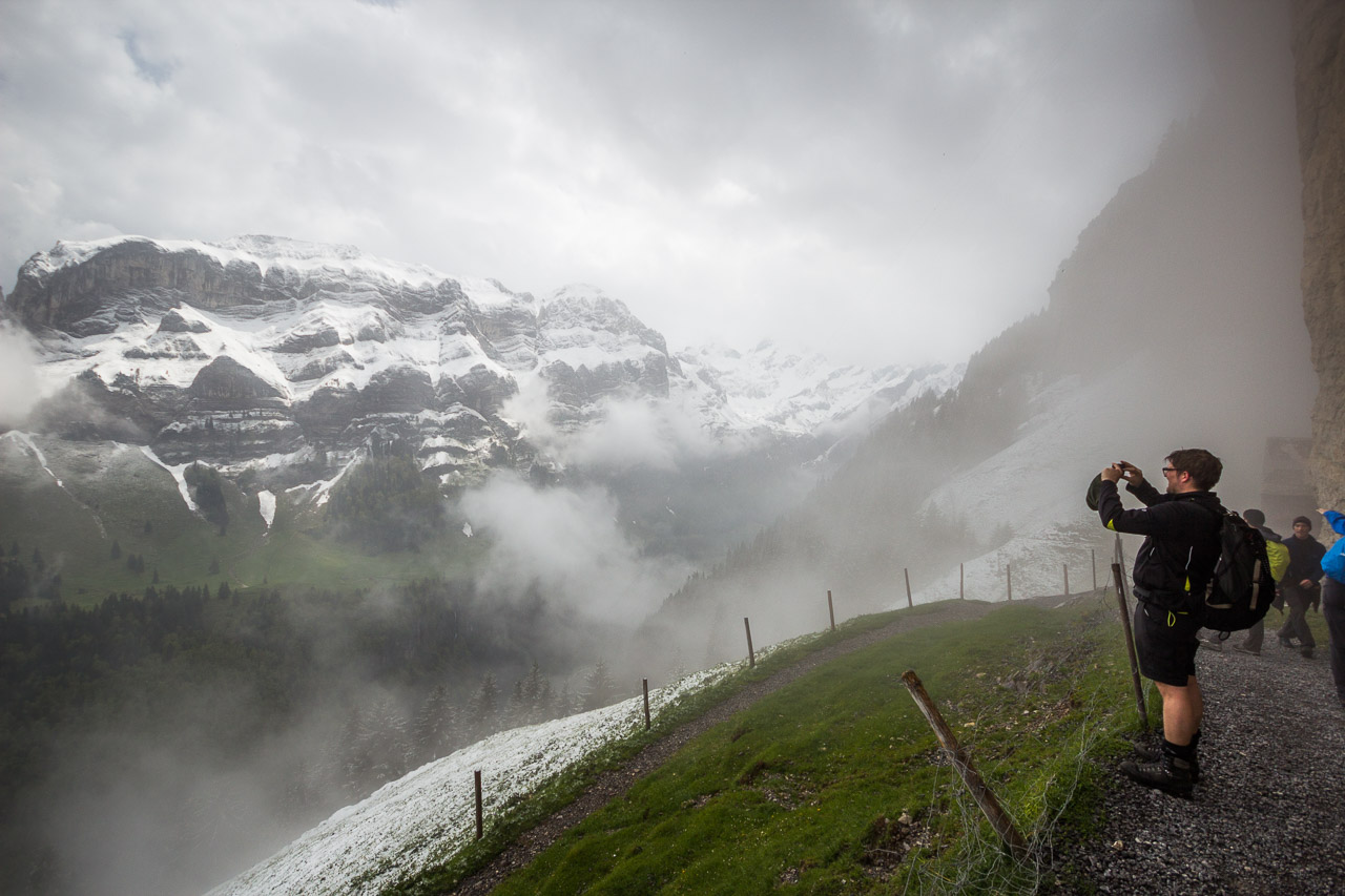 Harmadik svájci napunk részemről egy nagyszerű futással indult. A szállásunkra visszaérve tettem még egy próbát az előző napon „elázott” fényképezőgépemmel, de hiába. De nem maradtam „nagygép” nélkül egy kedves túratársunk jóvoltából: egy kölcsönkapott Canon 600D gombjait nyomkodhattam-tekerhettem a lenyűgöző Aescher Hotelhez vezető túránk során (legalábbis amikor nem féltettem elővenni az esőben – ilyenkor inkább a vízálló mobilommal fotóztam). Ezúton is köszönet érte!