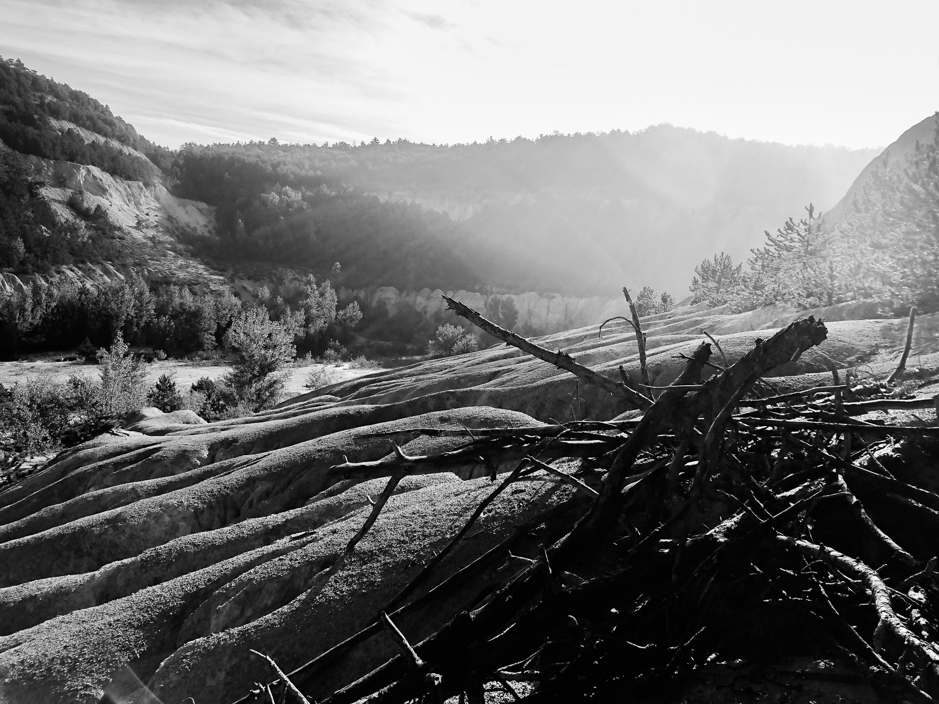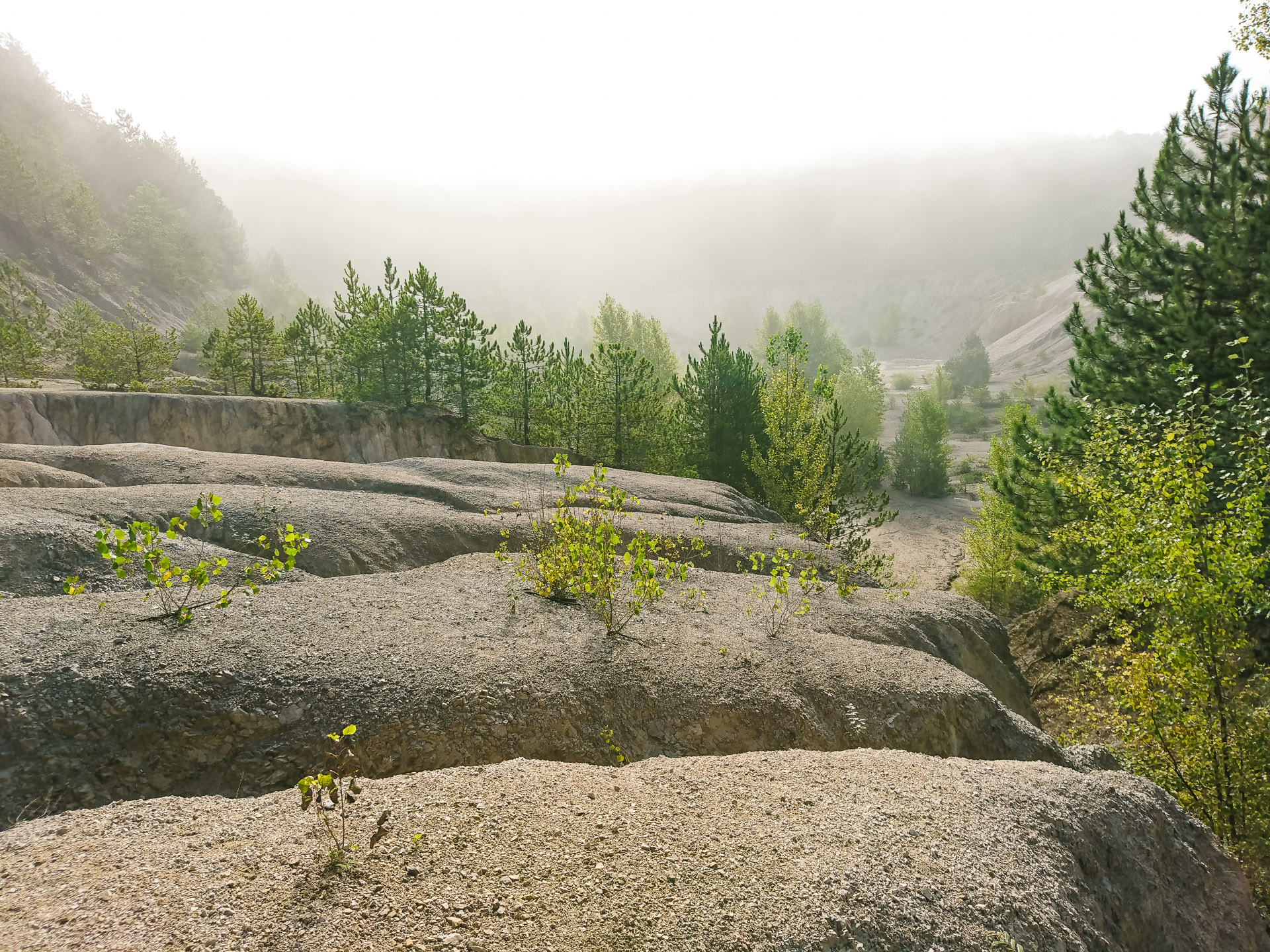 Felülről már többször megcsodáltam, és most itt vagyok lent, az egykori kőbányában. Szürreális, földöntúli hangulat ölel körül, egyre inkább körbevesznek a kőbányára telepedő felhő vízcseppjei. Misztikus, leírhatatlan élmény. Teremtés, kezdet, egymagam, önmagam… Köszönöm!