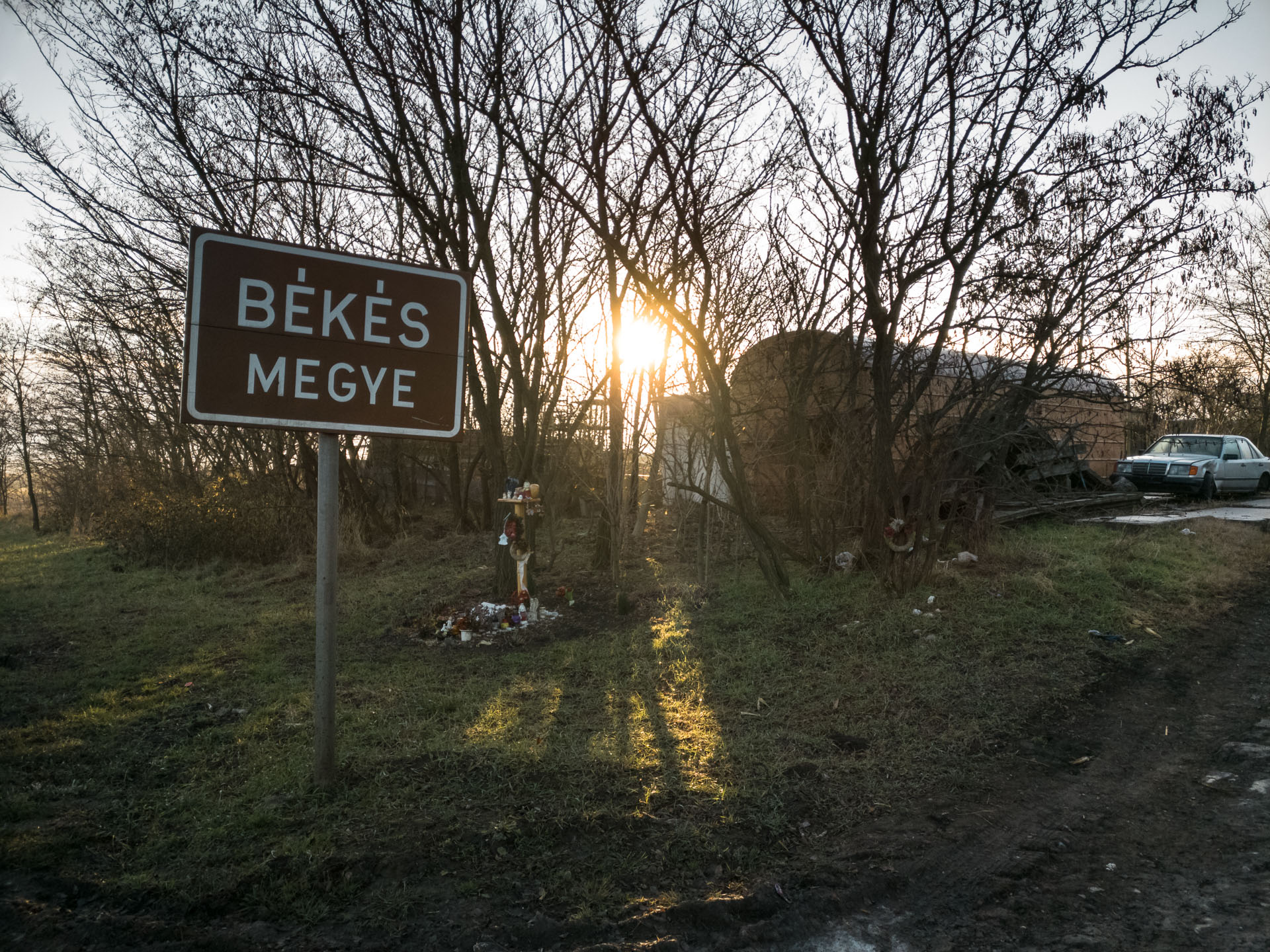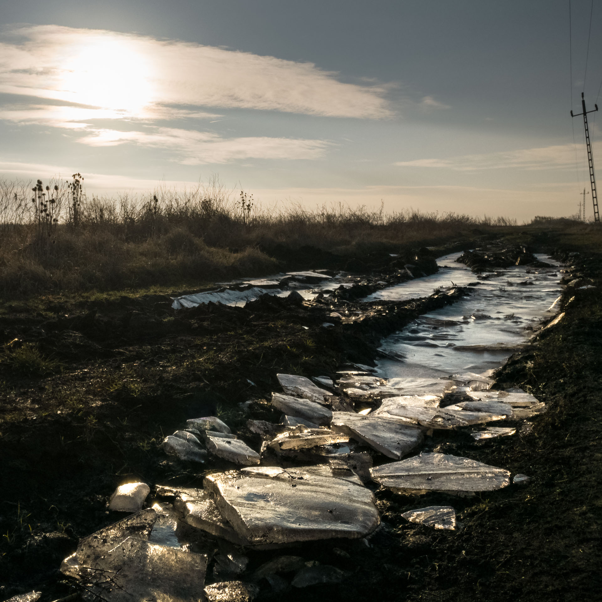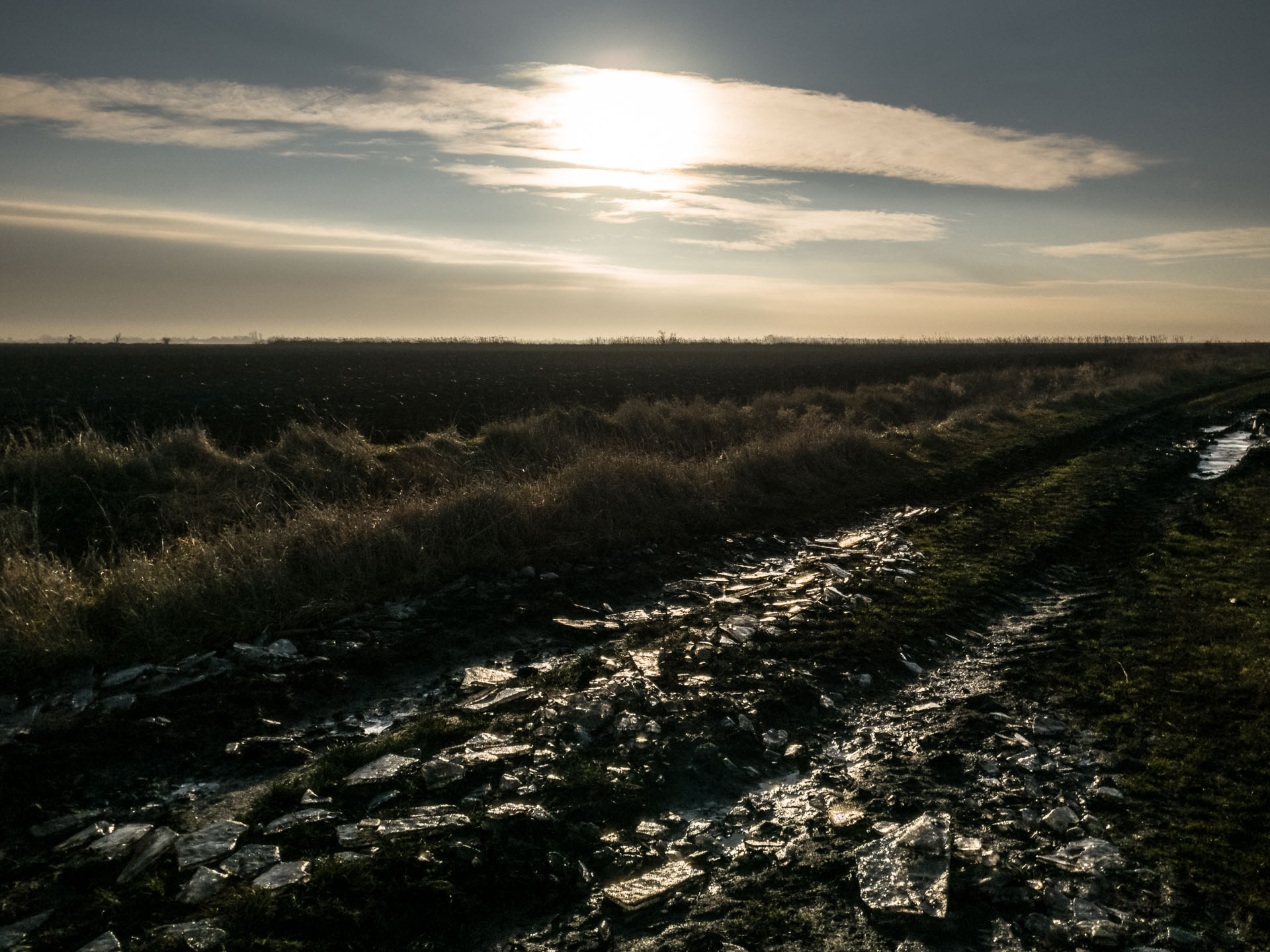 Azóta eltelt három hét, és most (2017. január 16-án), mikor eljutottam a karácsonyi futográfiáim feldolgozásához, elérzékenyülve fogadom őket. Mint régi nagyon kedves ismerősöket, akik már kicsit a feledés homályába merültek, de pont ezért még nagyobb a viszontlátásuk öröme. Jó barátokként vetülnek a retinámra, hadd mutassam be őket! Fogadd szeretettel Gyopárosfürdőt, a lakókocsis telket, a szántóföldek barázdáit, az égre fröccsent felhőket, a templomot, a kalyibát, a tanyákat, a villanyoszlopokkal szegélyezett utakat, a horizonton nyargaló őzeket, a nádakat, a fagyott vizeket, a fákat, a füveket, a tükröződéseket, az aszfalt repedéseit, a nap sugarait, a megyék határát, a rókatetemet, a jégtábla-szilánkokat, Árpád halmát, kéményét, földre hullott terméseit és elhagyott házát, az útelágazódást, a vakolatlan ház ajtaját, a füstölt kolbász vásárlásra felhívást, a „HÍZÓ ELADÓ” táblát tartó kerítés által takart telken álló házat vigyázó fa koronáját és a pénzérmés telefonfülkét!