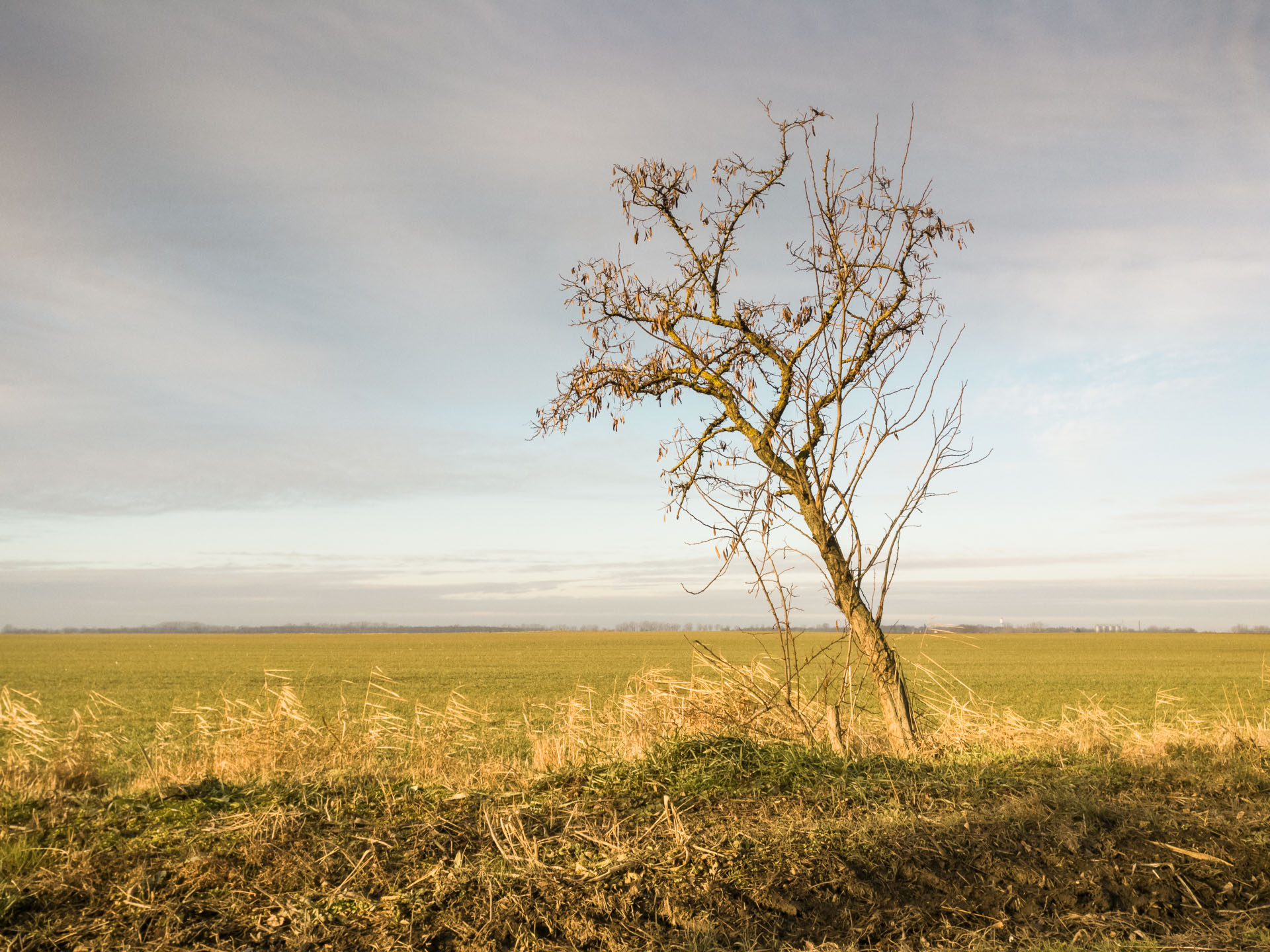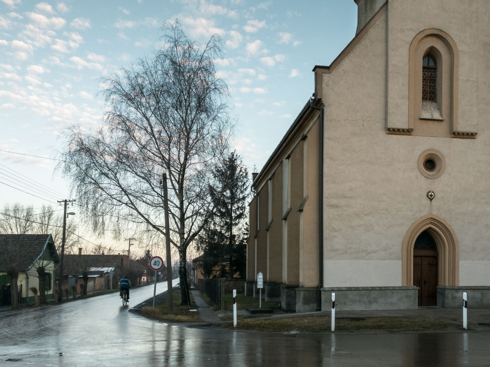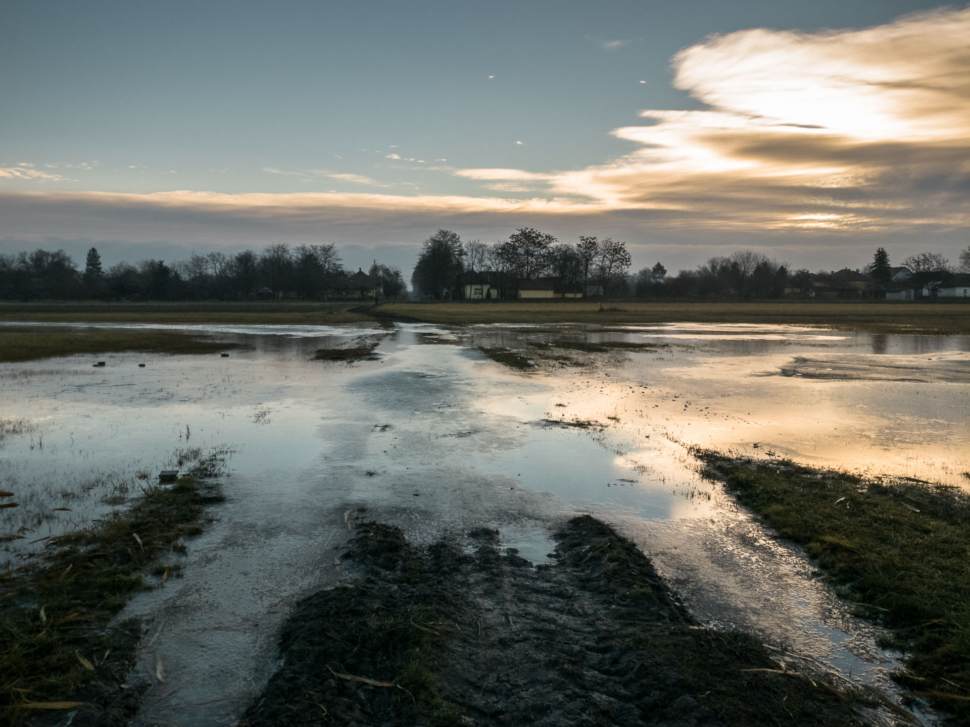 Azóta eltelt három hét, és most (2017. január 16-án), mikor eljutottam a karácsonyi futográfiáim feldolgozásához, elérzékenyülve fogadom őket. Mint régi nagyon kedves ismerősöket, akik már kicsit a feledés homályába merültek, de pont ezért még nagyobb a viszontlátásuk öröme. Jó barátokként vetülnek a retinámra, hadd mutassam be őket! Fogadd szeretettel Gyopárosfürdőt, a lakókocsis telket, a szántóföldek barázdáit, az égre fröccsent felhőket, a templomot, a kalyibát, a tanyákat, a villanyoszlopokkal szegélyezett utakat, a horizonton nyargaló őzeket, a nádakat, a fagyott vizeket, a fákat, a füveket, a tükröződéseket, az aszfalt repedéseit, a nap sugarait, a megyék határát, a rókatetemet, a jégtábla-szilánkokat, Árpád halmát, kéményét, földre hullott terméseit és elhagyott házát, az útelágazódást, a vakolatlan ház ajtaját, a füstölt kolbász vásárlásra felhívást, a „HÍZÓ ELADÓ” táblát tartó kerítés által takart telken álló házat vigyázó fa koronáját és a pénzérmés telefonfülkét!