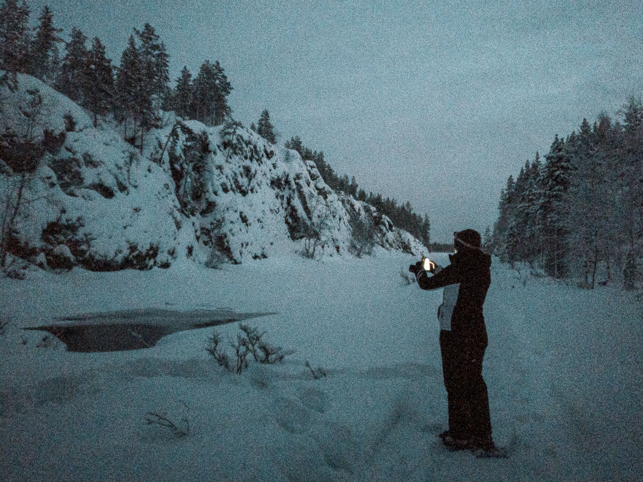 Számomra az egyhetes túránk csúcspontja volt ez a nap, melynek eseményei az ezerfelé tagolt Inari tavon, annak környékén és Pokkában zajlottak: kutyaszánozás, átnézés Oroszországba; majd egy hangulatos mini-túra után ismét a sarki fény volt a főműsor – ezúttal az előző napinál is pompázatosabb koreográfiával. Felejthetetlenül gyönyörű, leírhatatlanul megható élmény volt, amikor azért is örültem, hogy nem volt túl hideg, mert így nem fagytak az arcomra a könnycseppjeim. Mintha arról üzentek volna az égiek, hogy van még kapcsolat Isten és ember között…