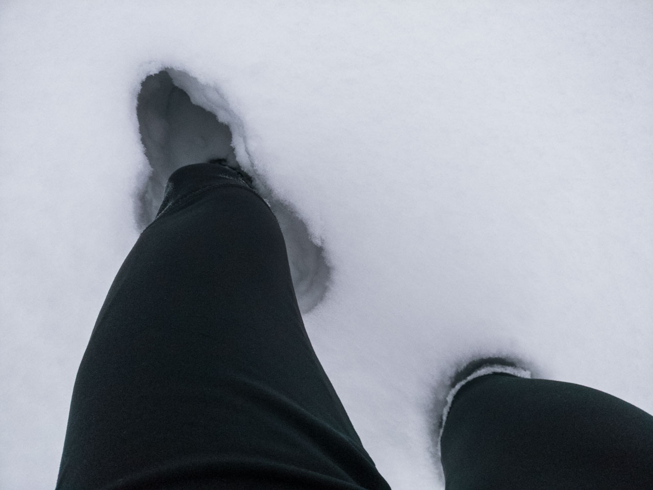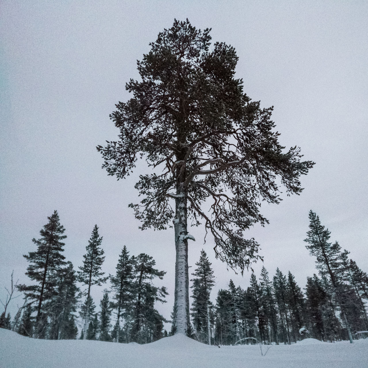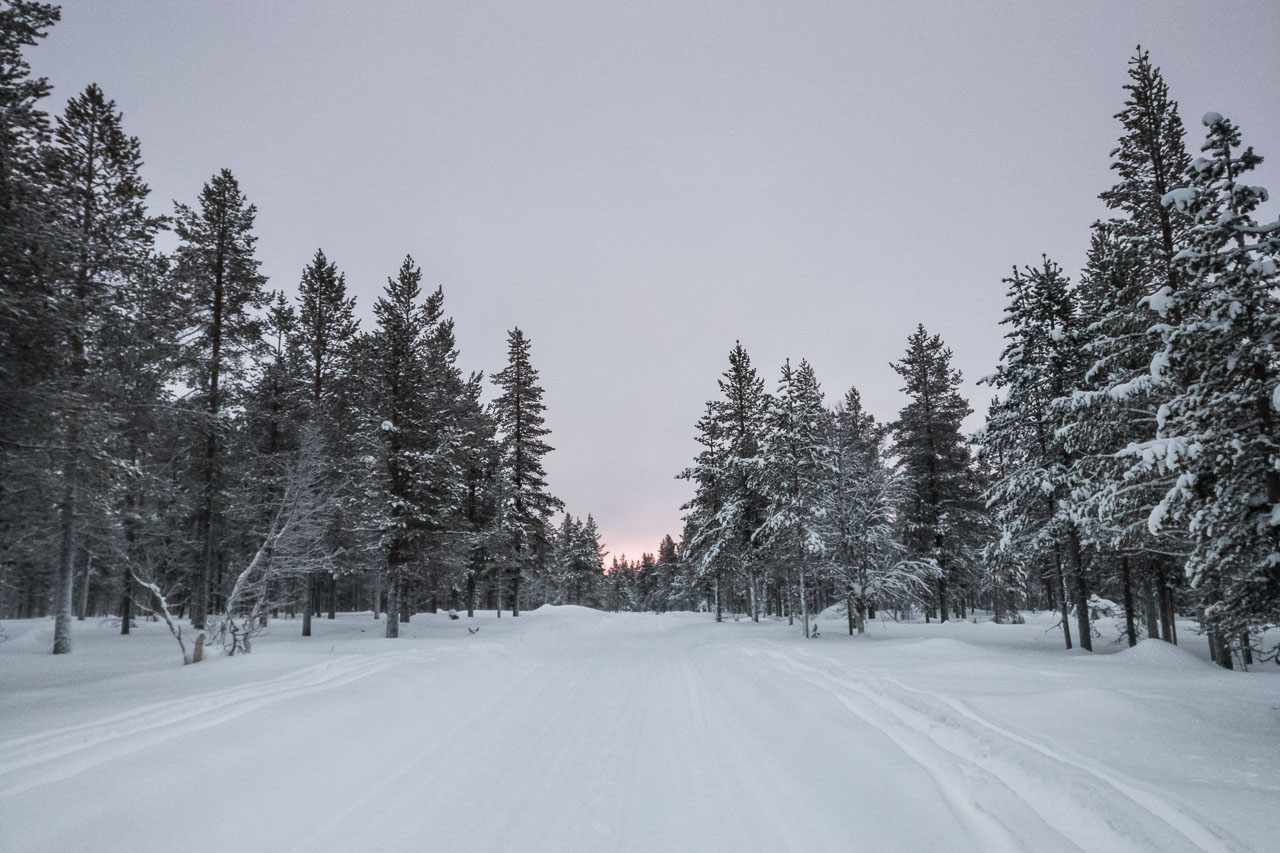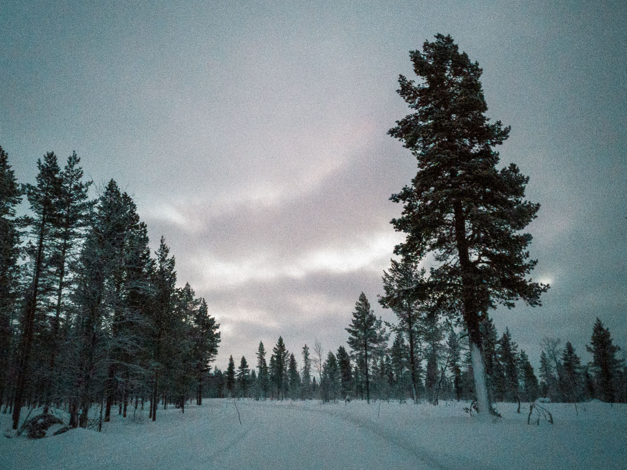 Az előző éjszaka sarki fényeinek nyomai már csak a fejemben (vagy ki tudja hol) vannak meg – 8:38-at mutat a telefonom, de az égbolt teljes sötétségét csak a csillagok lyuggatják, mikor elindulok. Nem sokkal van hidegebb, mint odahaza, -15 °C-os hidegben futottam már otthon is, de azért jól jön a kesztyűimbe és a cipőimbe tömött kéz- és lábmelegítő, és a nyakvédő, ami most először van rajtam futás közben. Teljes a nyugalom, szélcsend van, rajtam kívül senki és semmi nem mozog, és nem kelt zajt. A nyugalmat még egy érdekes fotótéma se „zavarja meg”, mindenütt csak a „már jól ismert” fák, és hó. Mégis varázslatos – és én még mindig nem adom fel: próbálom lefényképezni, de hiába, ebből a varázslatból szinte semmit nem őriznek meg a pixelek…