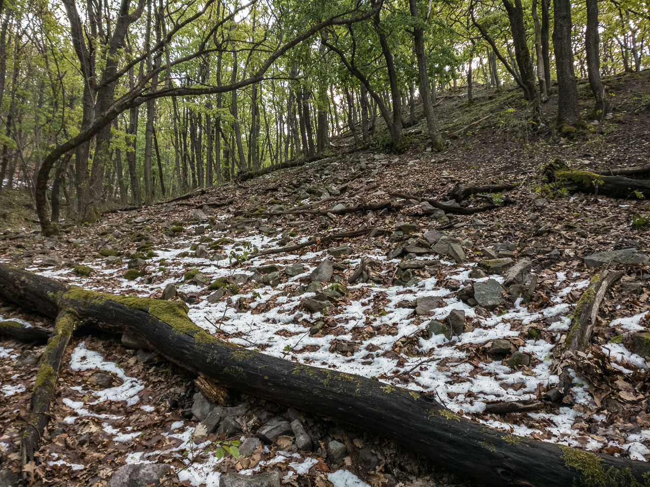 Kicsit feljebb már fehér hófoltok hűtik a látványt.