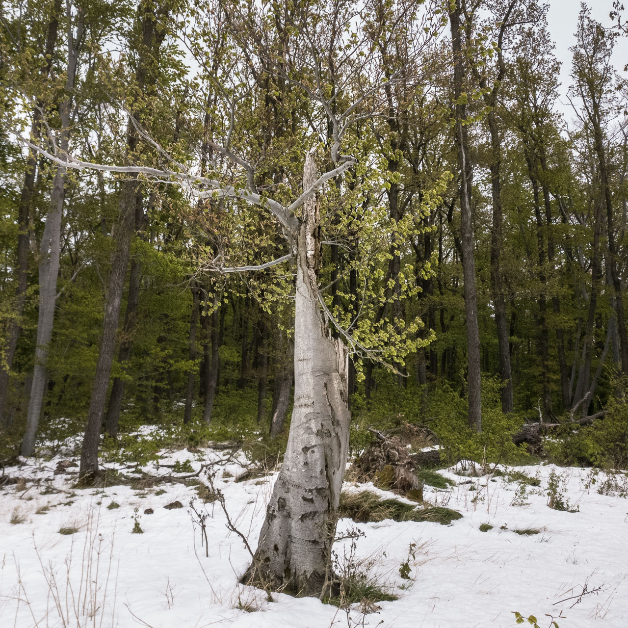 Egy nyúl fülét behúzva, mozdulatlanul ül a fa tövénél, csak mikor tízméternyire megközelítem, és tüzelésre emelem a telefonom, akkor szalad el.