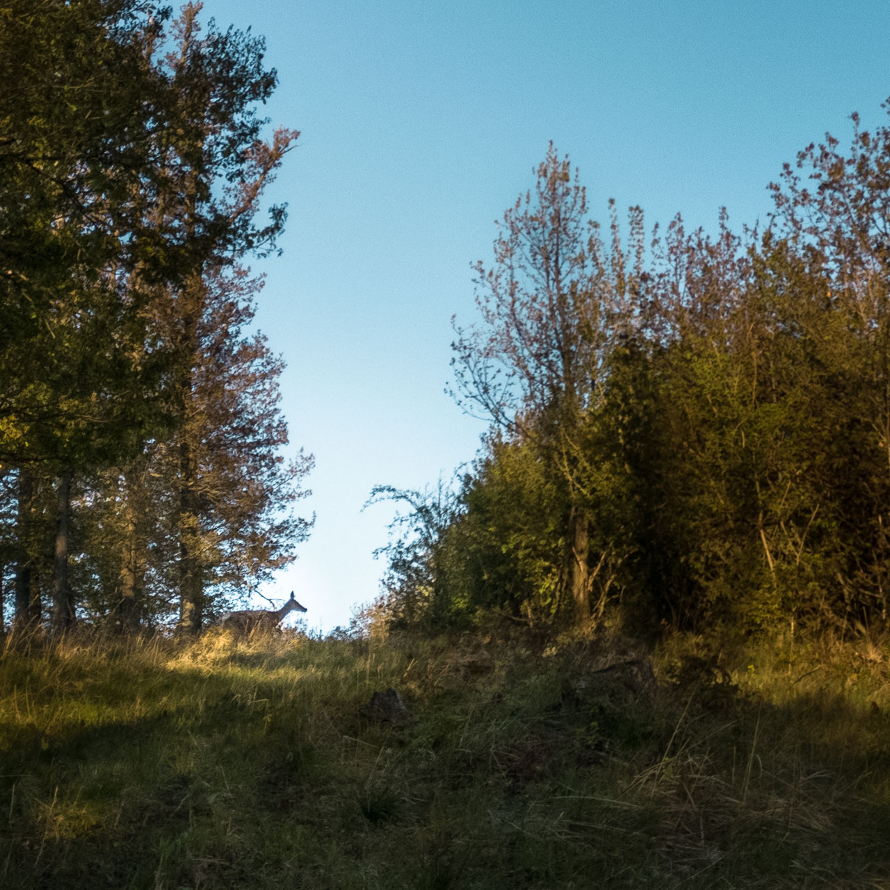 Egy cseppet sem félénk szarvas kölyök csalogat fel a dombra, ahol társaival is alkalmam nyílik az ismerkedésre – persze csak tisztes távolságból: