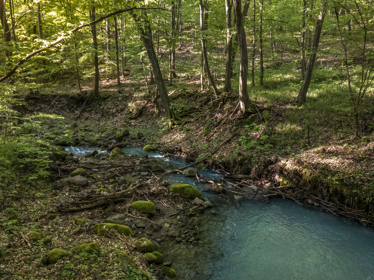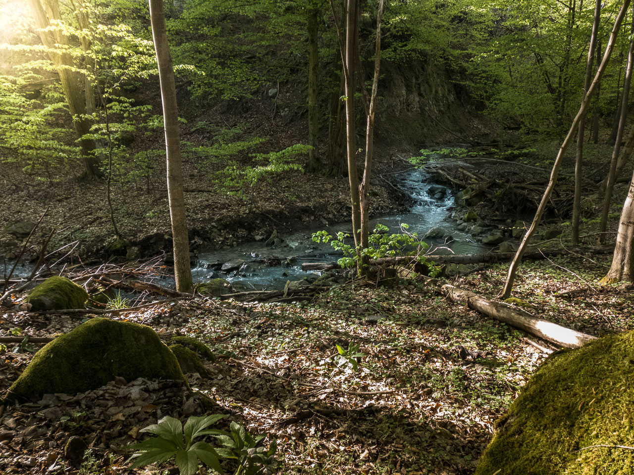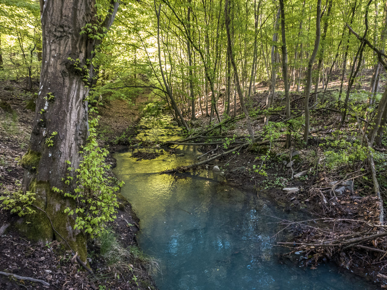 A tavasznak zöld tükröt tartó Bükkös-pataknak hol az egyik, hol a másik partján futok, aszerint, hol járhatóbb a terep, mert útról itt szó sincs. Lábaim a sárban, lelkem pedig mesés hangulatokban fürdenek.