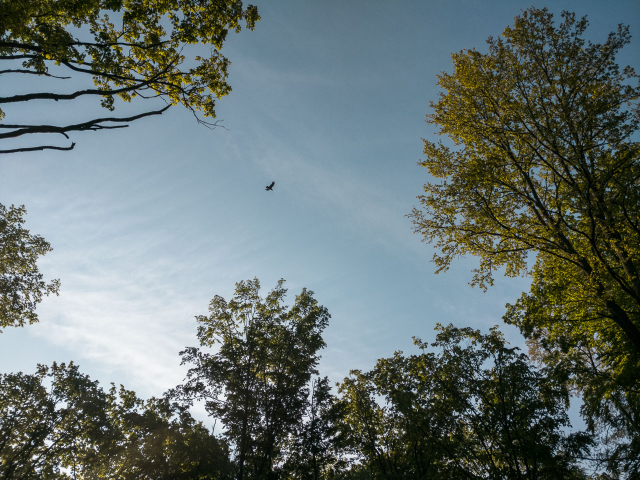 Két madár rikácsol a fejem felett, olyan érzésem van, mintha zavarnám őket (talán fiókáik vannak a közelben) – próbálok velük „szót” váltani, de úgy tűnik, nem értjük egymást.
