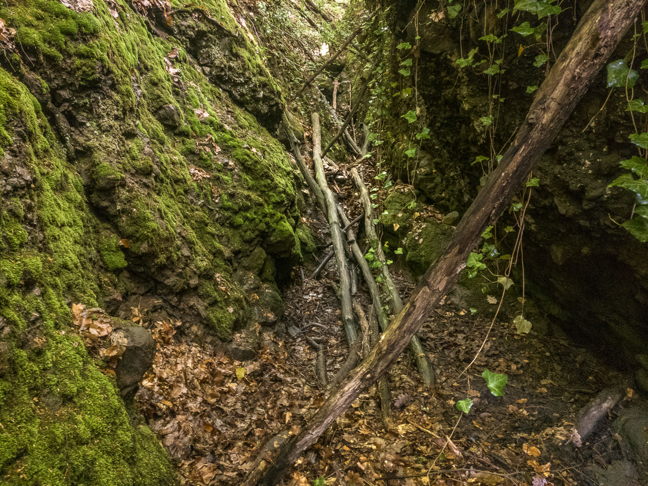 Igen, ez itt az „út”: fatörzseken lecsúszva, két oldalt a kövekbe kapaszkodva próbálom előre megtervezni következő lépteim nyomát.