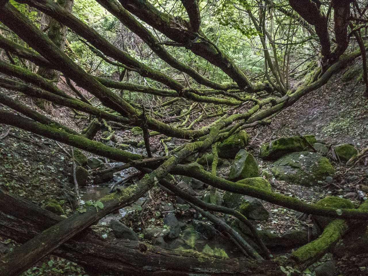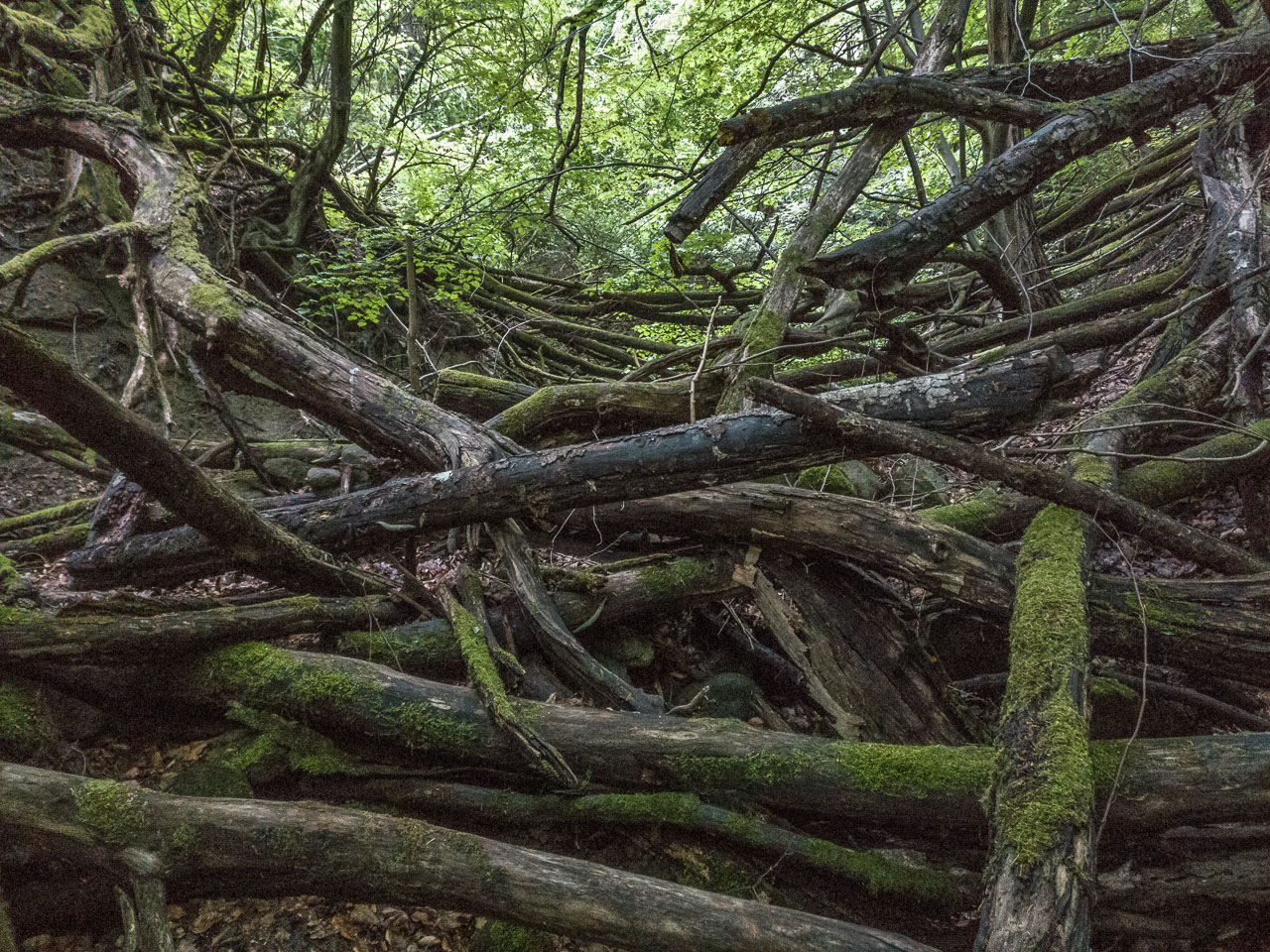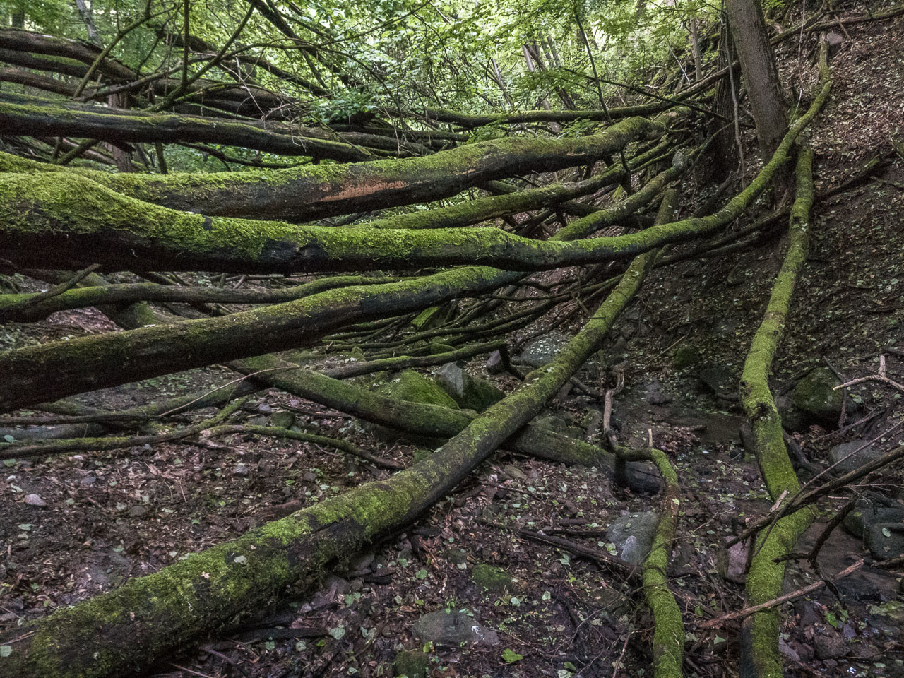 Gyönyörű a mohazöld huzatú kidőlt fák kuszasága!