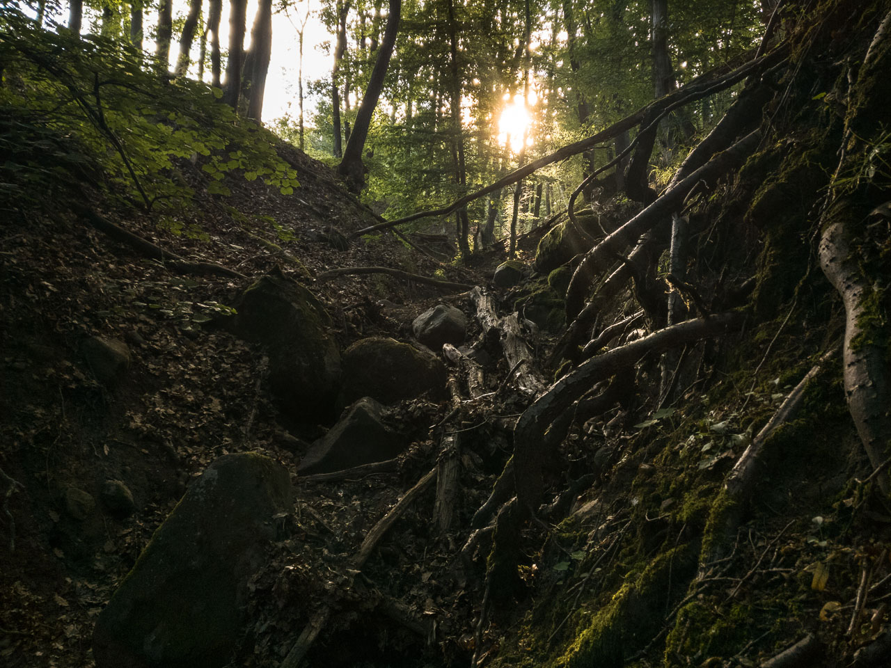 23 nappal e futásom után alig vagyok képes felidézni az emlékét. Fotó is alig maradt róla: az 51 „hazahozottból” mindössze 7-et tartottam meg. Jegyzetemre hagyatkozom: „Rengeteg vaddisznót, egy őzet és egy szarvast láttam (némelyiket egészen közelről), de nem fotóztam – kivéve a vaddisznókat, melyek csak akkor vettek észre, mikor rájuk röfögtem. A vége felé jött a legszebb rész: a Salabasina árokhoz hasonló terep, csak víz nélkül – néhol hirtelen 2-3 métert mélyül a szurdok, köveken, kidőlt fatörzseken másztam le, majd ugyanarra vissza fel; miközben élveztem a mozgást, hogy minden lépésemet alaposan meg kell fontolnom, és minden lépésnél jó döntést hozok. Csodálatos a testem! 7-kor eszembe jutottak szeretteim, akik még valószínű szunyókáltak, mikor én már utam végéhez közeledtem.”