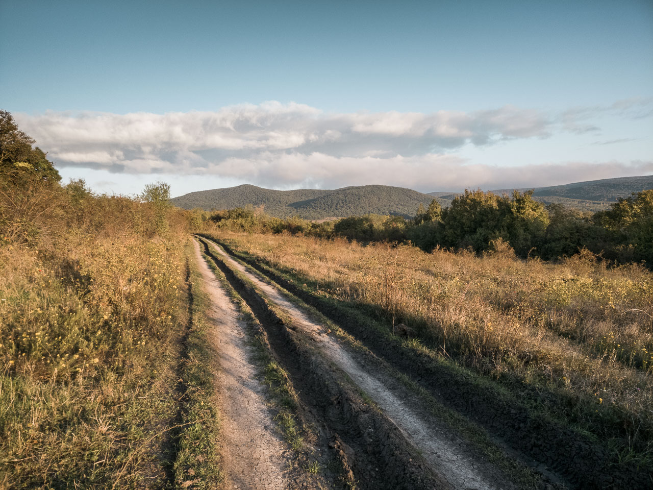 Nyílt terep, napkeltével, holdnyugtával, kora őszi színorgiával, üdezöldekkel, aranysárgákkal, rozsdabarnákkal, lángvörösekkel, égkékkel, felhőfehérrel, építési törmelékkel feltöltött utakkal, rengeteg szeméttel, elhagyott telkekkel, pusztuló házakkal, autóroncsokkal, kecskékkel, lovakkal, füves, bokros dombokkal, széllel, napsütéssel. És Igorral, a kutyával, meg az „életmentő” biciklis cigányasszonnyal.