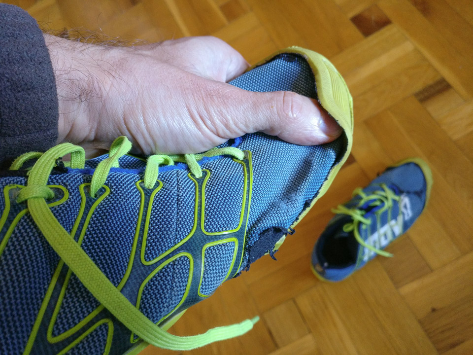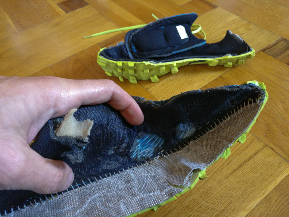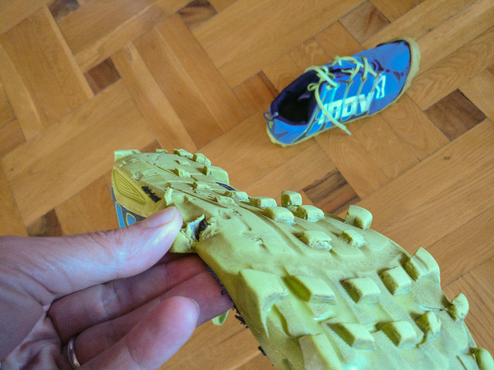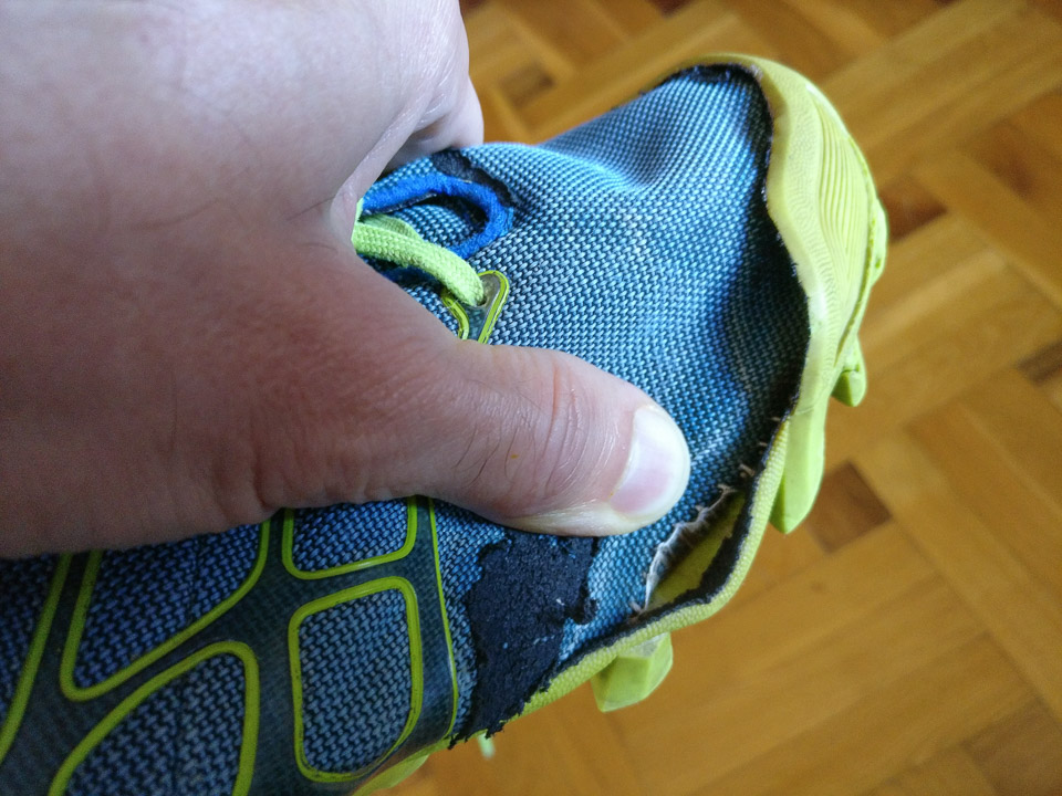 Két és negyed éve még azt írtam, hogy szeretem – de az ötödikként vásárolt futócipőmet hamar megutáltam. Különösen, miután pár száz km futás után elkezdtek leszakadni a talpáról a bütykök (a cipőnkénti 42 a balosnál 8-cal, a jobbosnál 3-mal lett kevesebb). Aztán kb. 600 kilométernél kezdetét vette a talp és a felsőrész szétválása a cipő orránál. De a legjobban azért utáltam, mert annyira puha és vékony a talpa, hogy a talaj egyenetlenségei rengetegszer voltak rám fájdalmas benyomással – egy nagyobb kőbe rúgás a tavaly eltörött, azóta se hibátlan jobb nagylábujjammal pedig nem egyszer késztetett hangos káromkodásra.