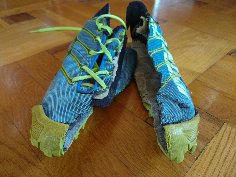 És most mindennek vége! Szombaton a Mecsekből már azzal a jóleső érzéssel szaladtam lefelé, hogy ezek az utolsó kilométereim ebben az elcseszett cipőben. Tegnap, miután megnéztem a Kill Bill 2. részét, elővettem a legnagyobb késünket… 1001 benne lefutott kilométer után ezzel a fotósorozattal búcsúzom az Inov-8 baklövésétől: