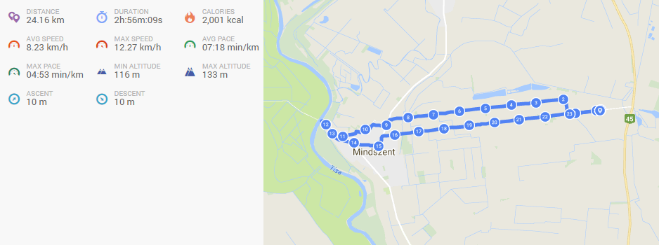 Mindszenten egy úton átszaladó nyúl és száraz idő fogad. Szinte napra pontosan két éve futottam utoljára itt – pontosabban az akkori starthelyem a Tisza partján most induláskor a „cél” (oda érkezve pedig a féltáv lesz).
