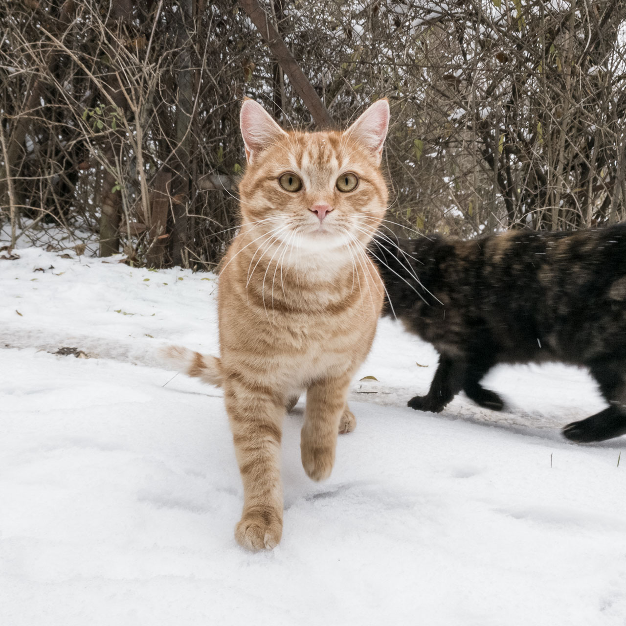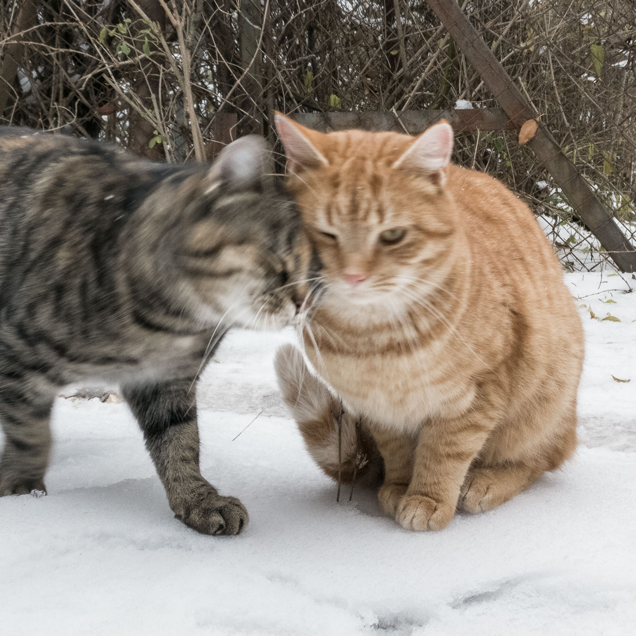 Ősszel a vakolatlan ház tornácán pihentek a cicák: