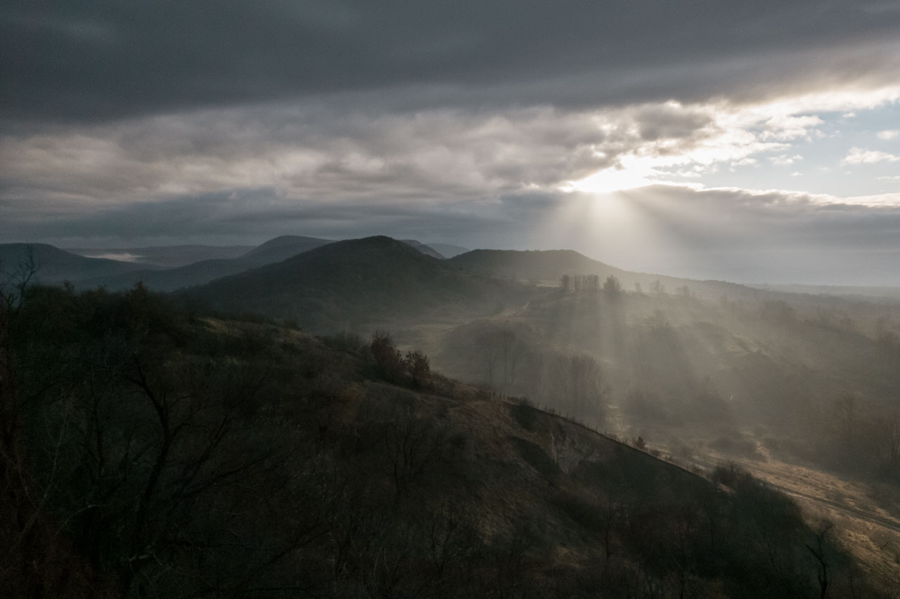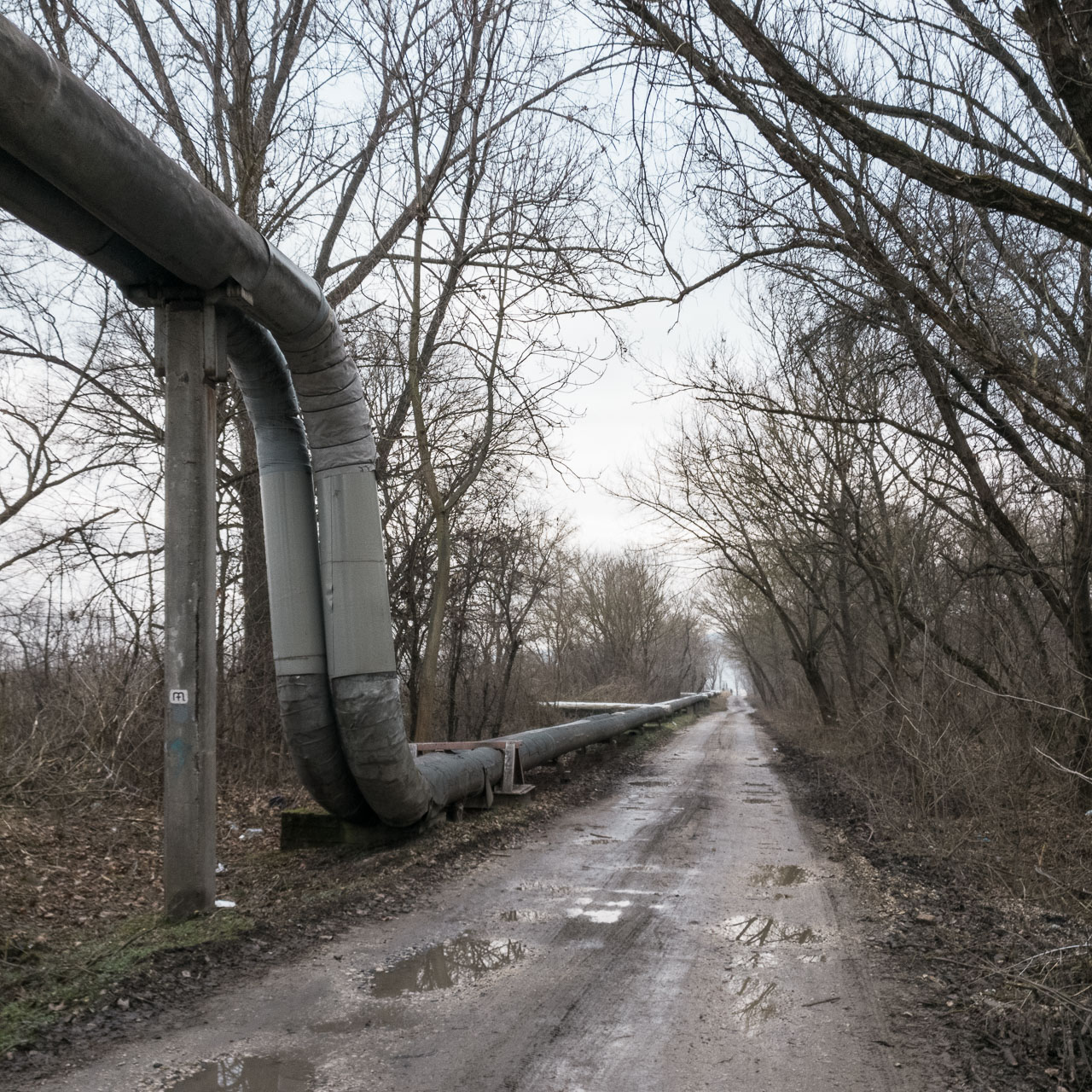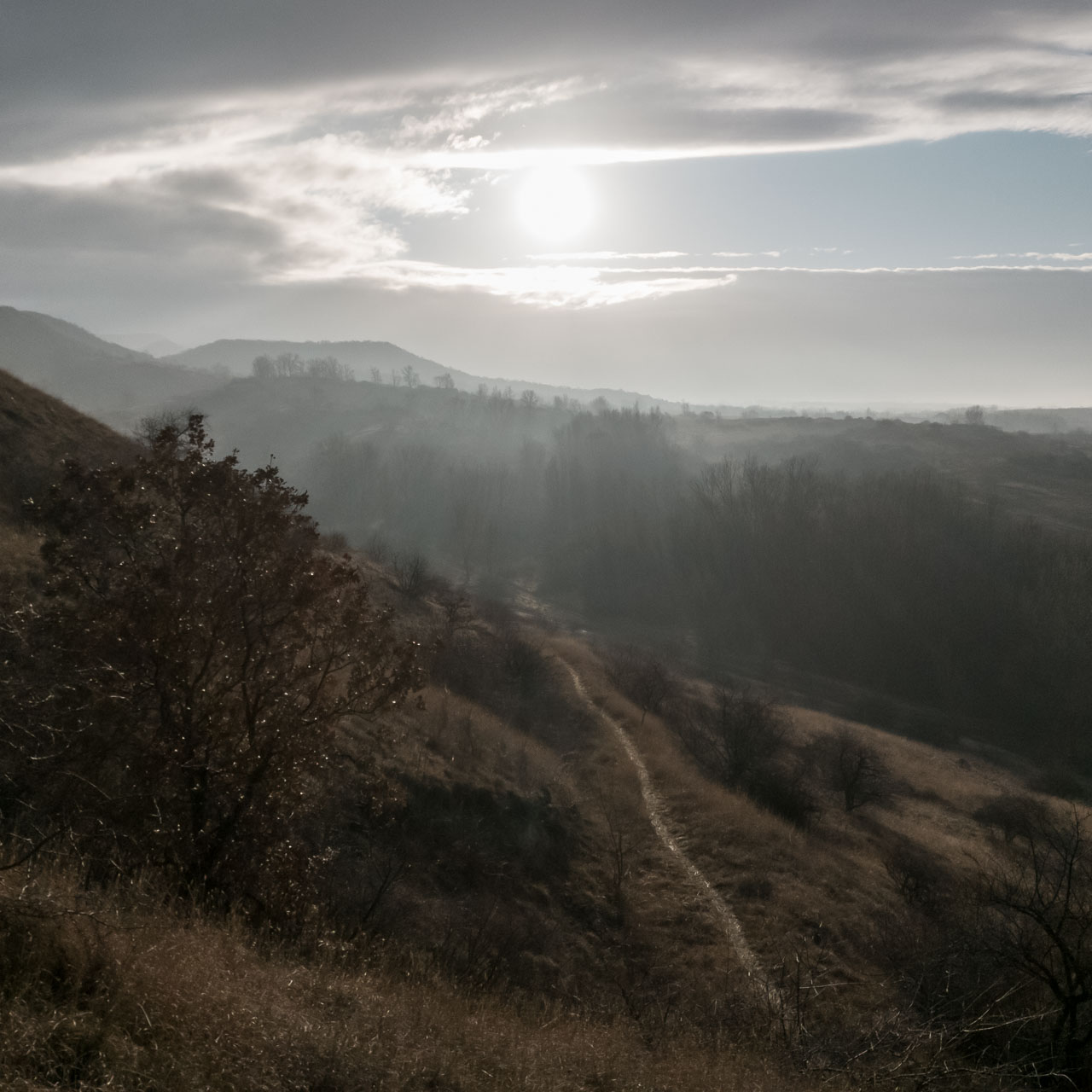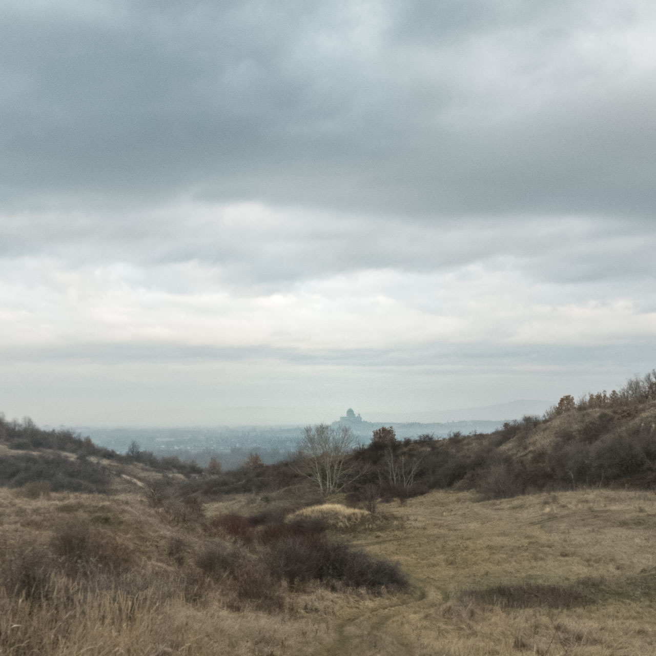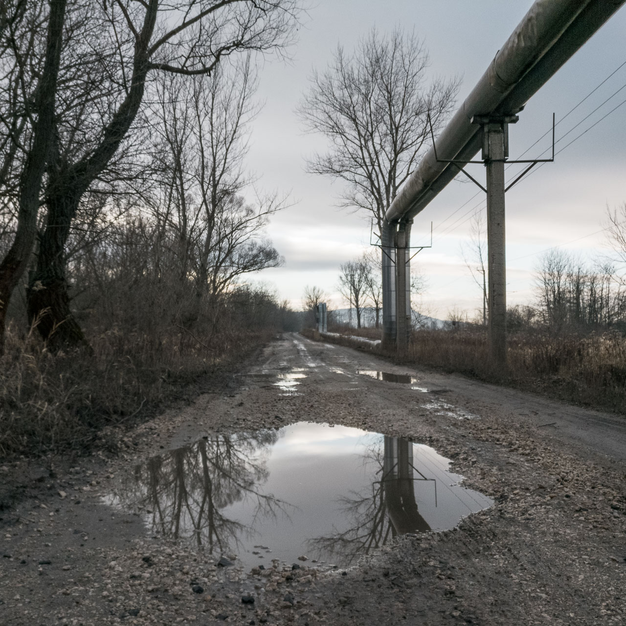 A szemétlerakó telep után, a 117-es út túloldalán egy más világ fogad, itt az ég szürkéi, a fű sárgái és a bokrok barnái színezik a tájat.