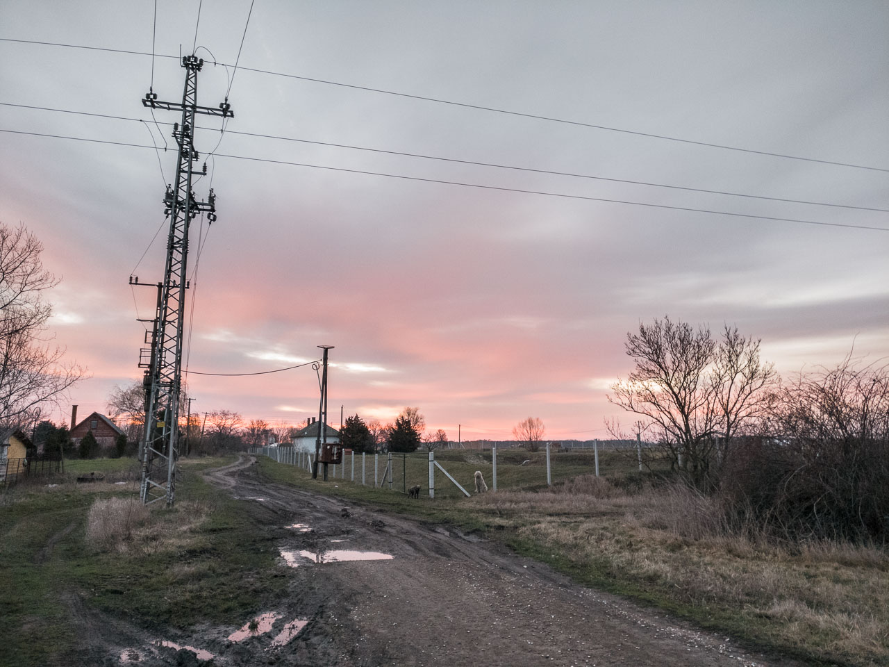 Előző este beszélgettünk a kutyákról: sógoromhoz beszökött két eb, és megtámadták a sajátjukat. Anyósom is mesélt egy történetet, melyben egy kóbor kutya széttépett egy tacskót. Álmomban kutyákkal harcoltam… és most itt van egy, rögtön az utam elején. Ugatva fogad, mikor még az autóban ülök. De ezúttal benne erősebb a félelem, mint bennem, visszabújik a kerítés alatt a sajátjának vélt területre; nekem meg marad a többi, és folytatom, ahol tavaly október végén abbahagytam – akkor épp egy barátságos kutyával ismerkedve.
