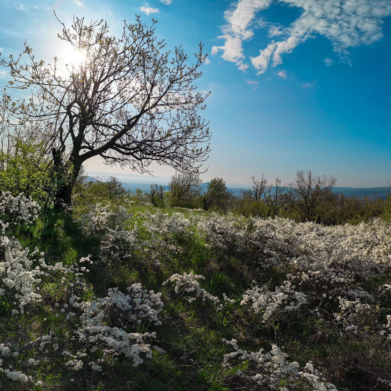 Baranyi Tibor Imre szavai járnak a fejemben: szubjektum (én), akció (érzem, hogy fáj), objektum (térd). Régóta lenyűgöz a gondolat, hogy csak az van, ami a tudatomban van. Ha nem fókuszálok a térdfájásra, nincs térdfájás. Ha nem vettem volna észre az őzet, nem lenne őz (ahogy nincs is, amikor elbújik a fa mögé). Ha nem hagyom tömni a fejem a sok félelemkeltő marhasággal, akkor nincs mitől félni. (Ezt végigjátszom egy példával: elmegyek valahova, ahol súlyos, halálos betegséget okozó fertőzést lehet kapni, de én erről semmit nem tudok, és nem is betegszem meg. Szerencsém van? Aligha. Az én világomban nem létezett az a bizonyos halálos kór, mert nem teremtettem bele a tudatommal.) Ez csodálatos! Akárcsak ami körülvesz: a tavasz zöld bujasága, és izgatóan friss, megunhatatlan illatai – nyarat idéző hőmérséklettel (utóbbit szívesen odáznám még nyárig).