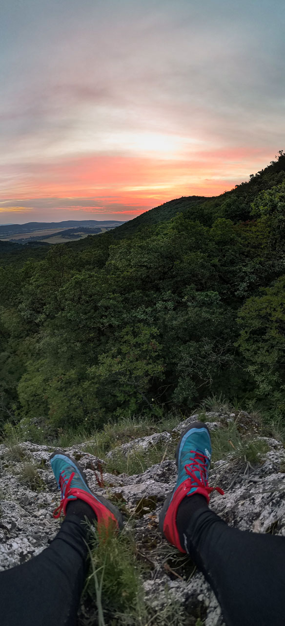 Lassan kortyolom a fröccsöm, és érzem, hogy testem egyre inkább ráhangolódik a futás gondolatára, és bár tele a hasa, szaladni kíván. Vacsorám végeztével komótosan elpakolok, mindennek megadom a módját, hisz ráérek, a Kevély-hegyi kőfülke bő másfél kilométerre van – futva csak pár perc lesz, ami drágáimnak jó félóra. Adok ételt a macskáknak, majd a lábamra húzom viseletes Inov-8 Mudclaw 300-asom. A tükörből fura figura néz vissza rám: deréktól lefelé mintha futó lenne, de a sűrű mintás, galléros póló nem illik hozzá. Első gondolatom, hogy futópólót húzok, de ezt hamar elengedem…