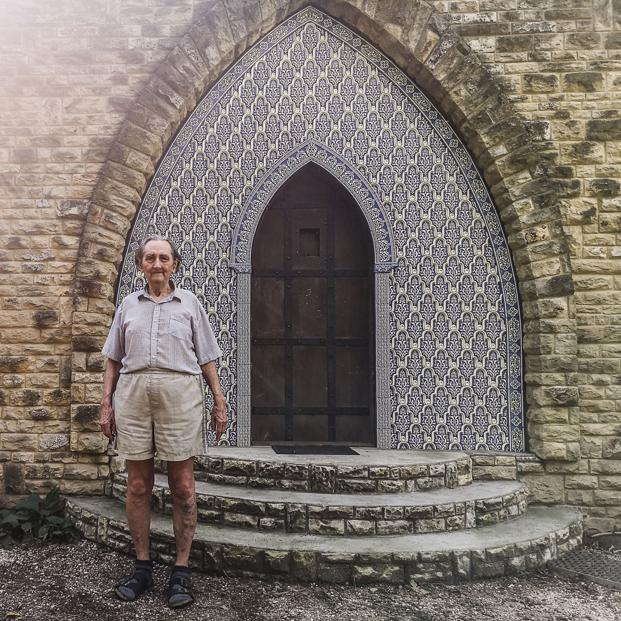 Kopogásomra nyílik az ajtó, és érdeklődésemre a „boszorkány” azt feleli, a férje építette a házat. Arcán borotvahabbal előjön a „mester” is, én pedig ámulatba esve kérdezem: szóval ez egy lakóház, önök itt laknak? Igen! És ahogy egyre többet tudok meg, ámulatom csak fokozódik. Az alkotó az egész házat maga építette (a kémény kivételével – mert azt a felesége nem engedte); a lépcső két éve készült el. Ötven éve költöztek ide a feleségével (az akkor épült alsó szintre), és még egy négyzetméternyi felület vár burkolásra a belső térben – merthogy az is a bejárati ajtót körülölelő, kék-fehér, keleti motívumokkal díszített kerámiával borított. A kerámialapokat is maga készíti! Nem akarom elhinni… de miért is hazudna nekem a Mester? A fal hőszigetelése két méter vastagságú téglafalnak felel meg; reggel két órára befűtenek, és egész nap meleg van odabent télen. Csípjen már meg valaki, ez a valóság? Egészen szürreális élményben van részem…