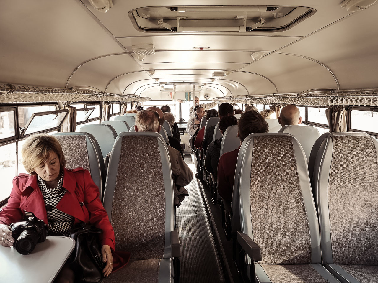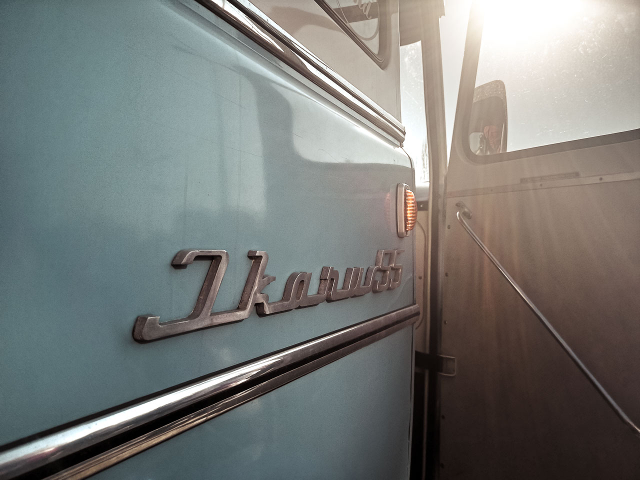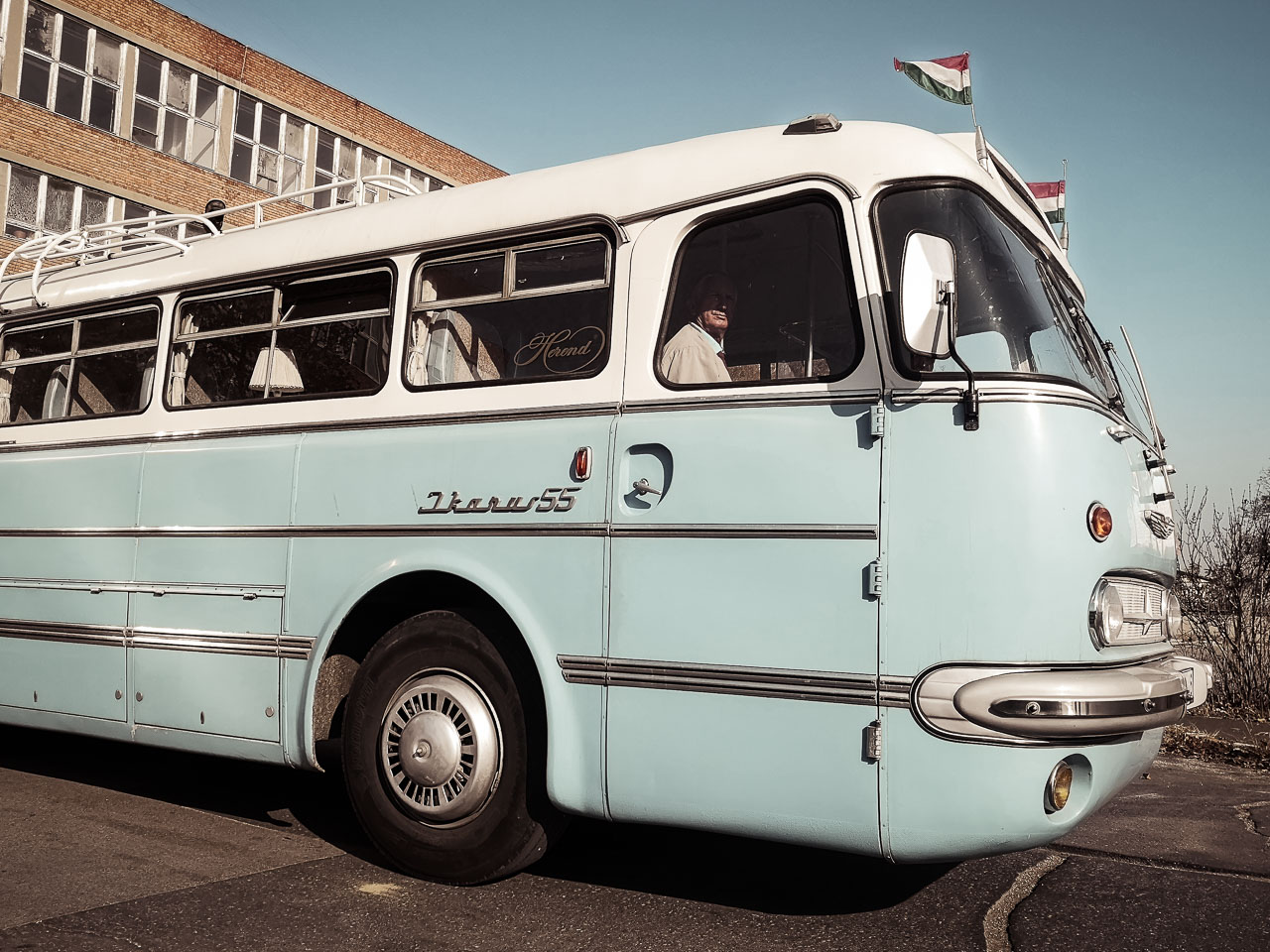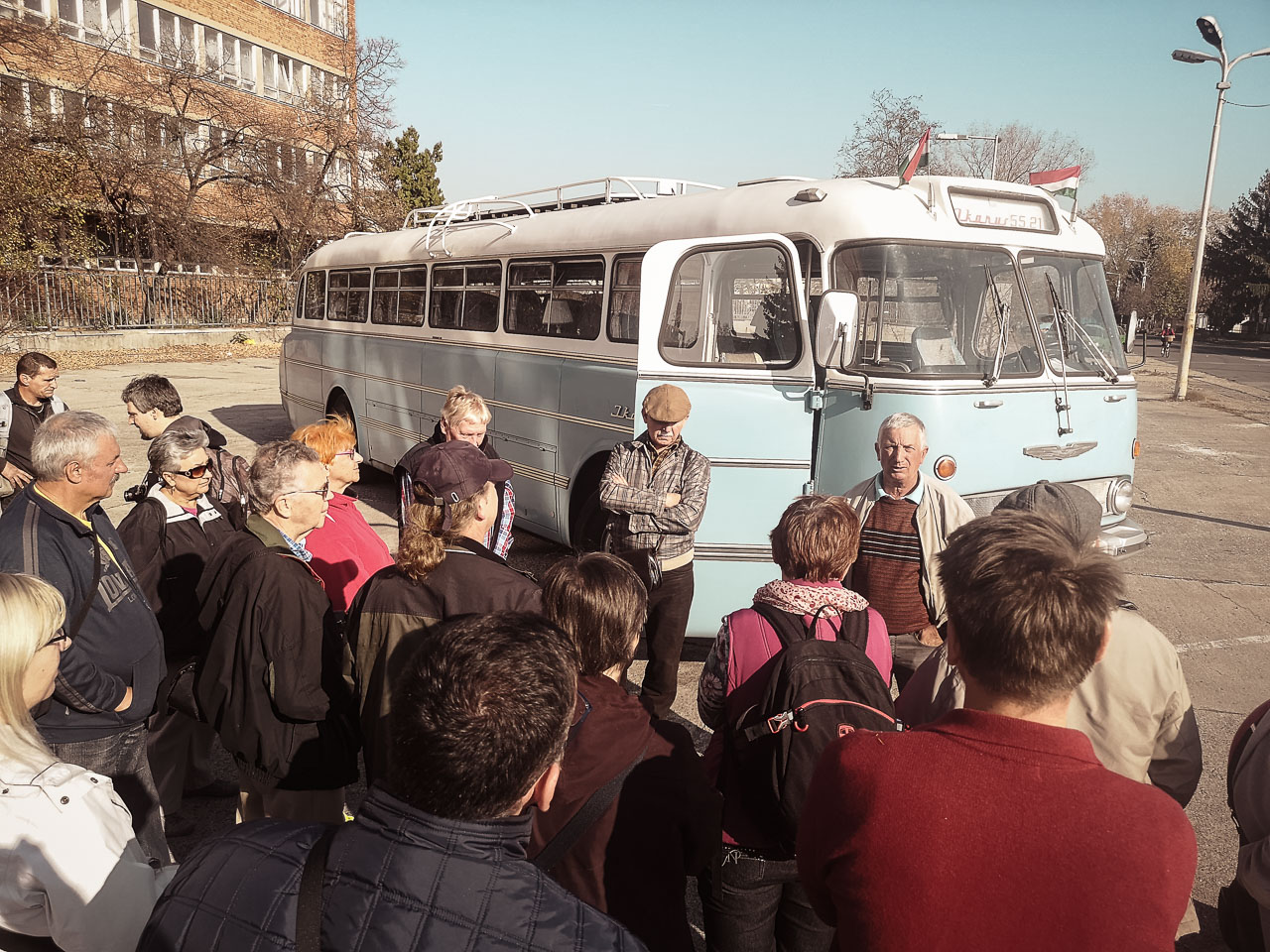 Épp egy hete a Kertvárosi Időutazó kalauzolásával látogatást tehettem a 16. kerületben, az egykori Ikarus gyárban; ahol Simon Páltól, aki 1964-től kezdődően a valaha gyártott összes Ikarus buszt gyártotta vagy szerelte (nézd meg a Heti Napló riportját róla), sok érdekes történetet hallottam. Egyetértek Pali bácsival: a repülőgép tervezők által megálmodott faros Ikarus 55-ös szerintem is a világ legszebb busza (Simon úr elmondása szerint – ha jól emlékszem – az 1954-es Világkiállításon meg is kapta ezt a címet)! Lenyűgöznek kecsesen gömbölyded formái – no meg a fara! Örülök, hogy ülhettem benne (a buszban, mellyel Simon Pál és barátai minden évben elmennek Erdélybe), és még fényképezhettem is!