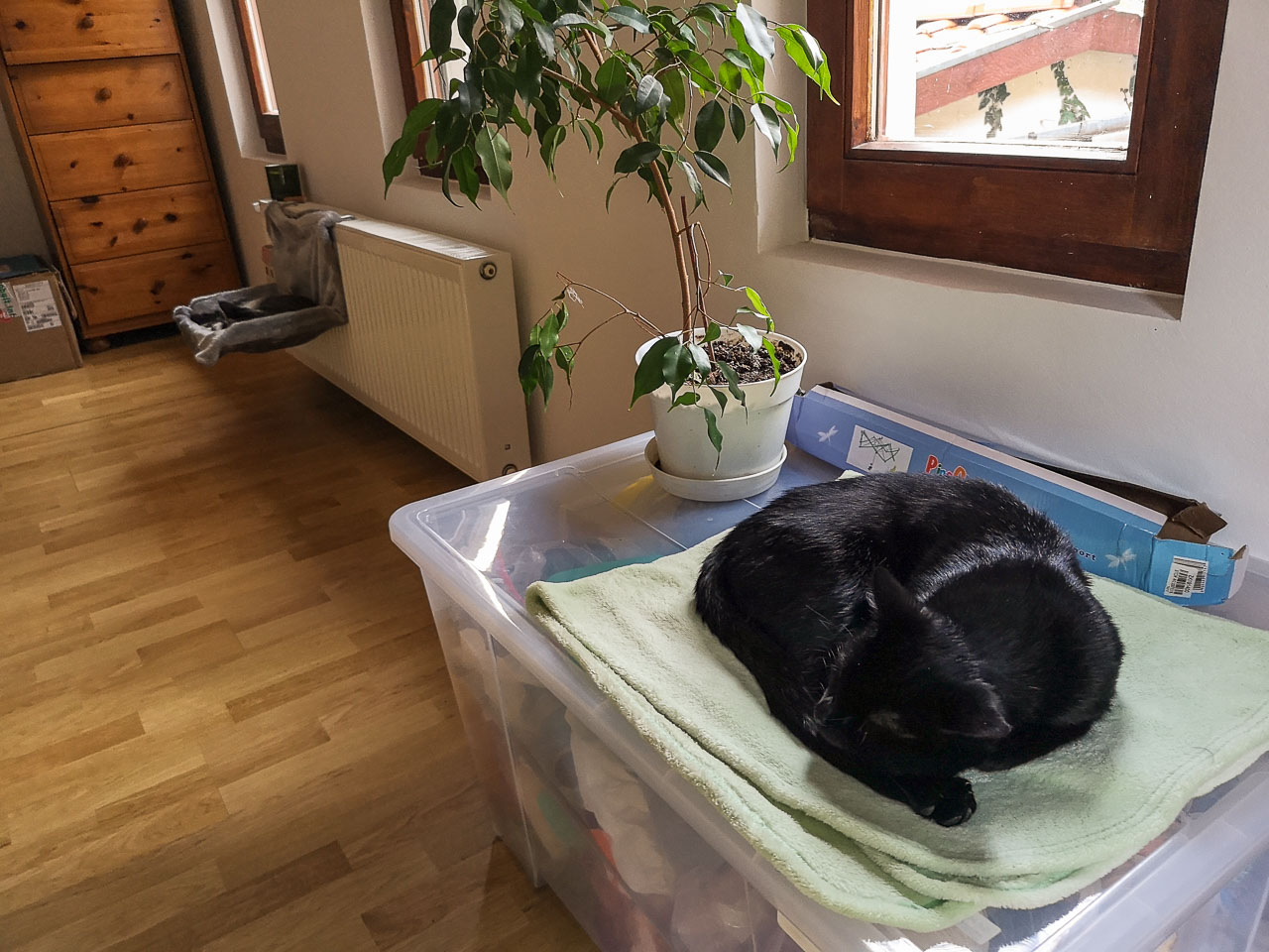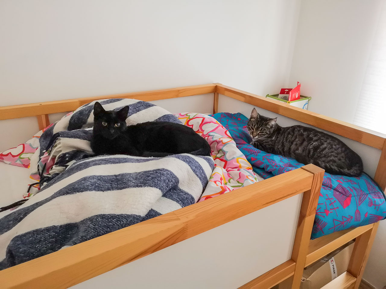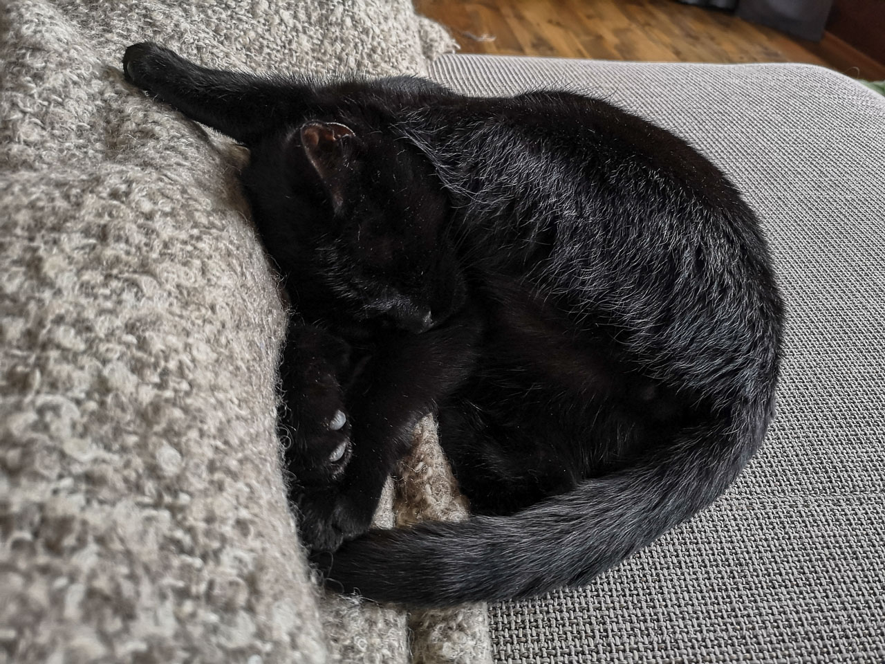 A fentiek után már egyértelmű, hogy egy macskánál csak két macska jobb. És a macskának is jó, ha van egy fajtapajti a közelében. A nyár elején bővült a családunk Picurral. Aztán Picur sajnos hamarosan egyedül(i macska) maradt. Egy hónappal Kormi halála után akadt meg a szemem egy Facebook bejegyzésen, egy örökbefogadható, fekete, menhelyi cicát tartalmazó képen. Őt végül nem adták, de a menhely honlapján – macskaallergiája miatt – hirdette valaki Dömét, akit – Picur örömére (is) – november 24-én hazahoztunk (egyébként Döme kb. kétszáz méternyire lakott előző otthonunktól).