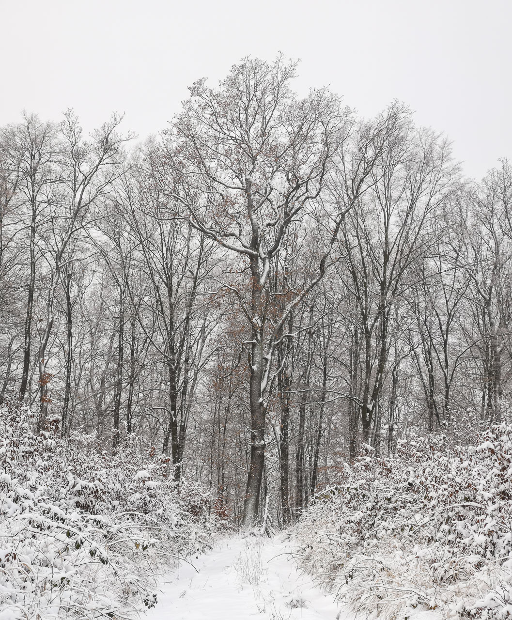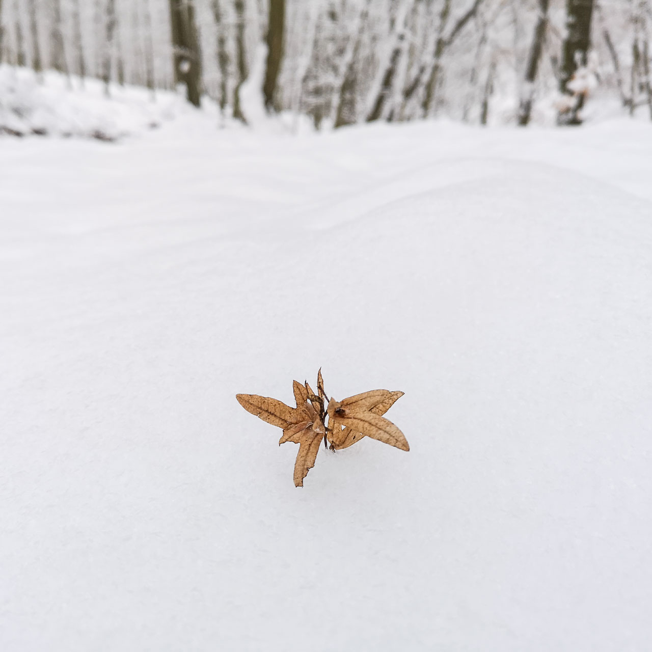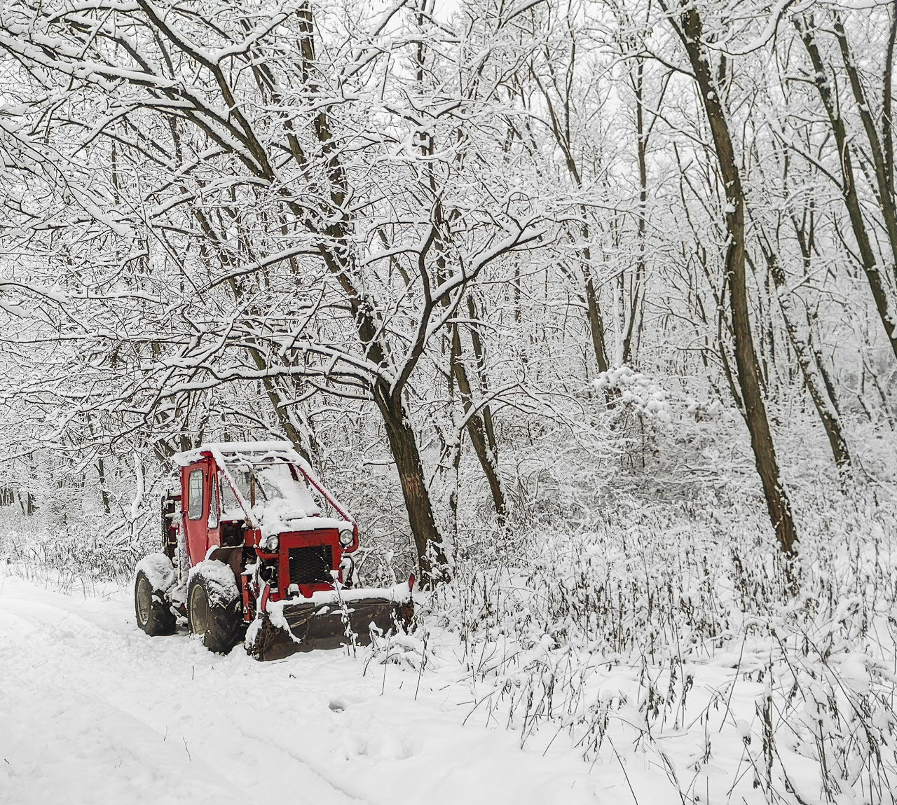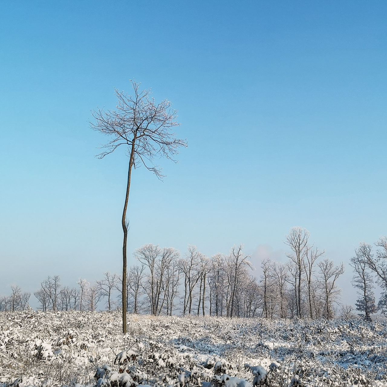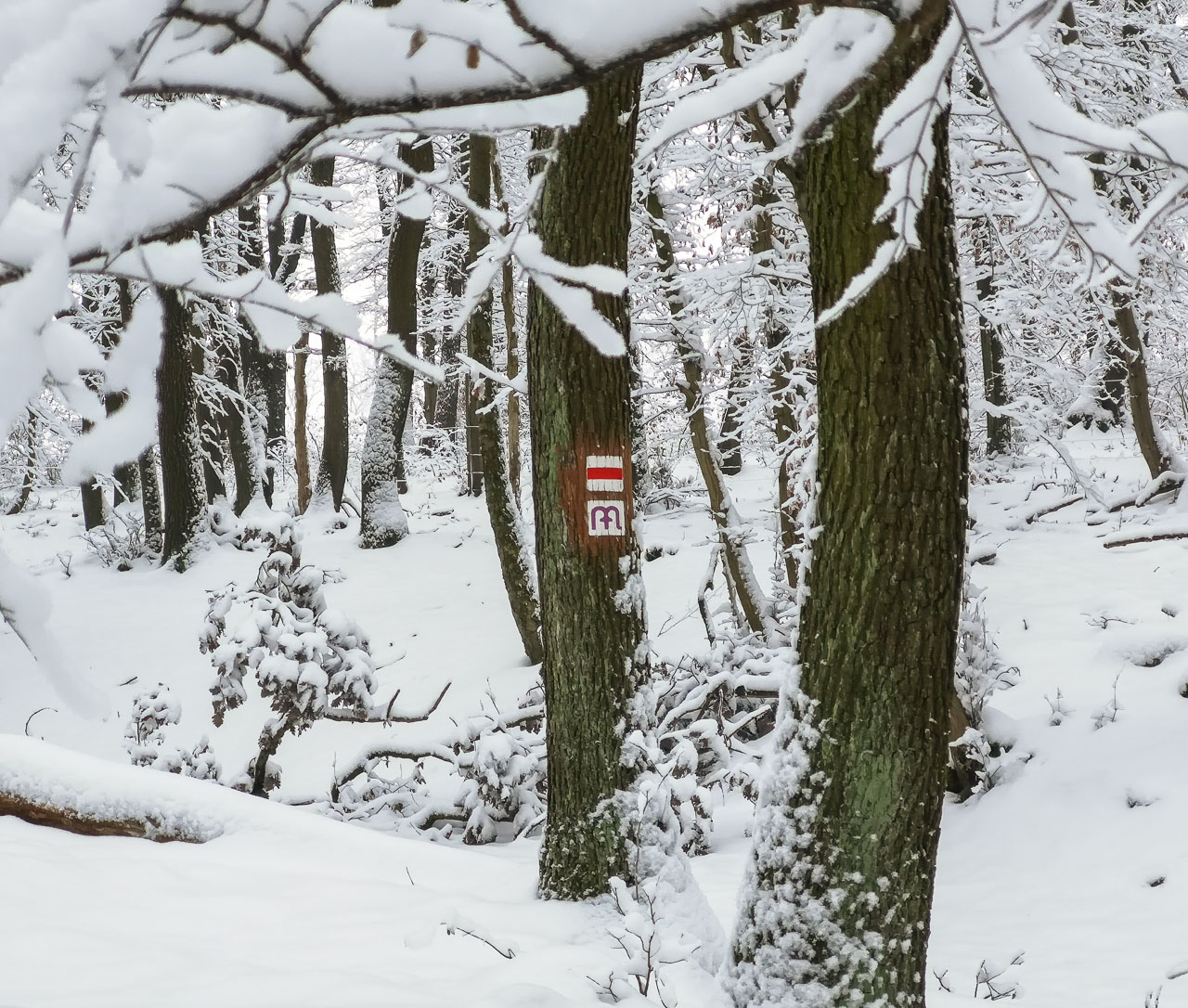 Futókalandom helyszínén a monokróm tájat csak egy piros munkagép és a turistajelek színezik. Elkényelmesedett városi emberként indulok, próbálva úgy lépdelni, hogy a lehető legkevésbé legyen havas a cipőm – ami persze teljesen reménytelen a majd’ arasznyi, néhol még szűz hóban. Mindenesetre bennem van az érzés, hogy ez rossz, hideg, a komfortzónámon kívüli.