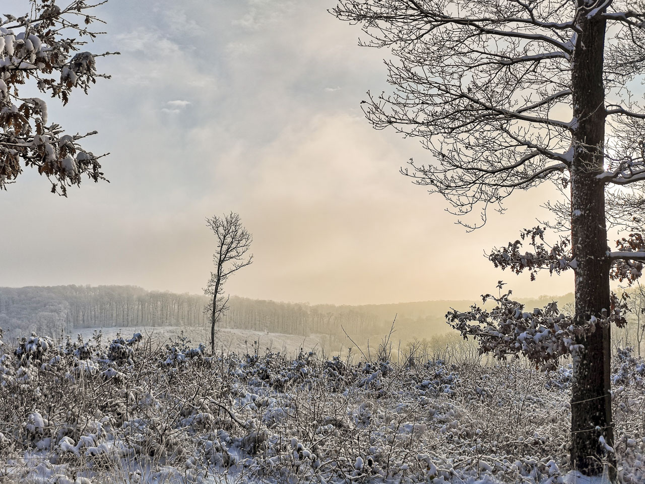És hol van már a monokróm hajnal… Kékek, barnák, sárgák és fehérek együtt ünneplik a telet – velem együtt, kinek már rég „lefagyott” a lába, de ez az ember már nem a két órával korábban útra kelt elkényelmesedett városi. Már az se zavar, ha bokáig süllyedek a hóban, mert a színes fények összeolvasztanak: táj, tél és én – mind egyek vagyunk.