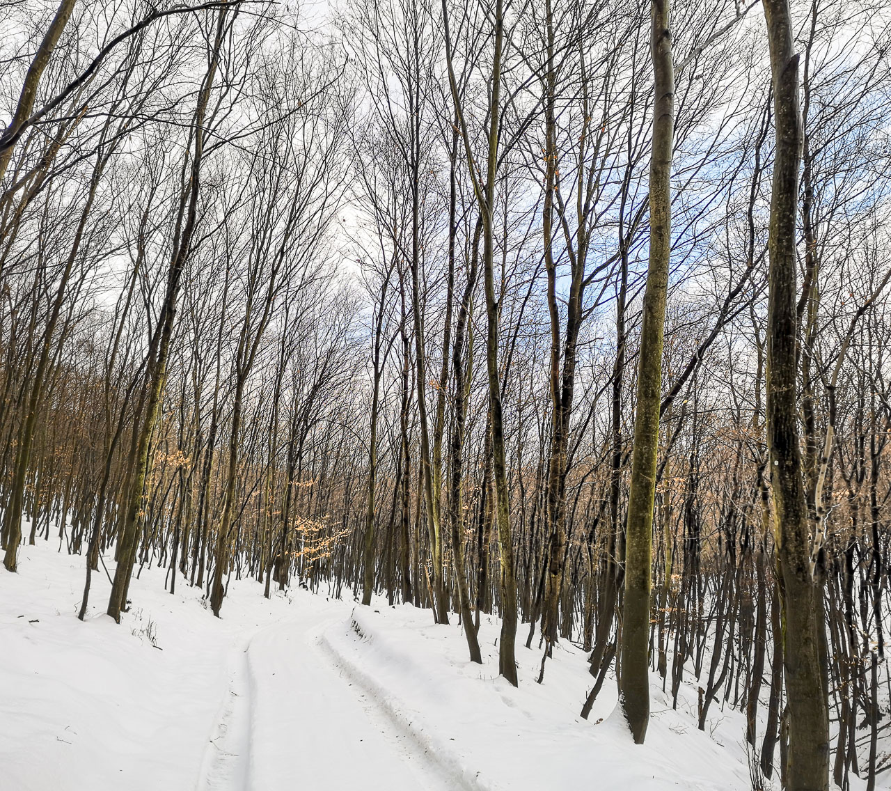 Hohohó, ez de jó: lefelé futva az arasznyi hóban minden lépésem egy lábnyit tovább csusszan – néha mélyebb gödrök, ritkán pedig reccsenő jég a meglepetés!