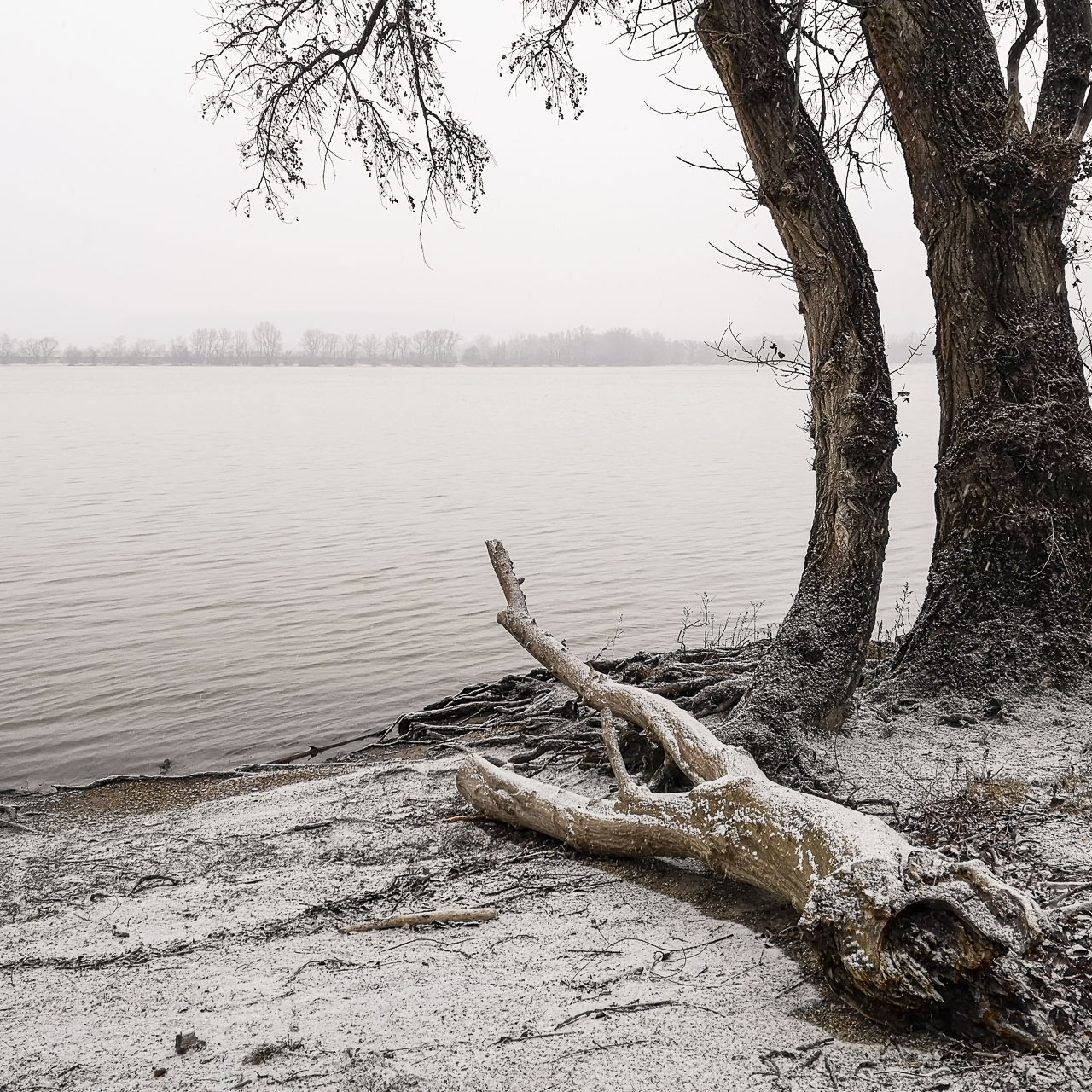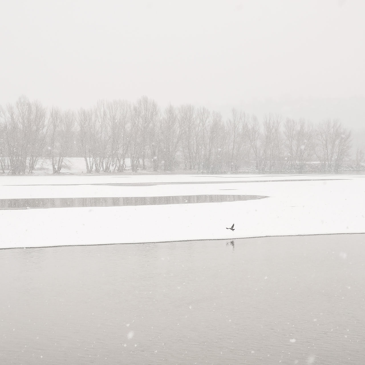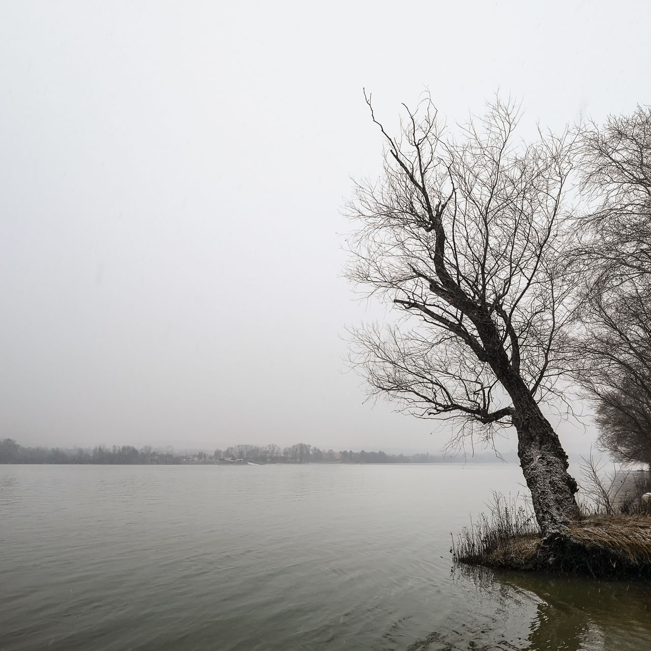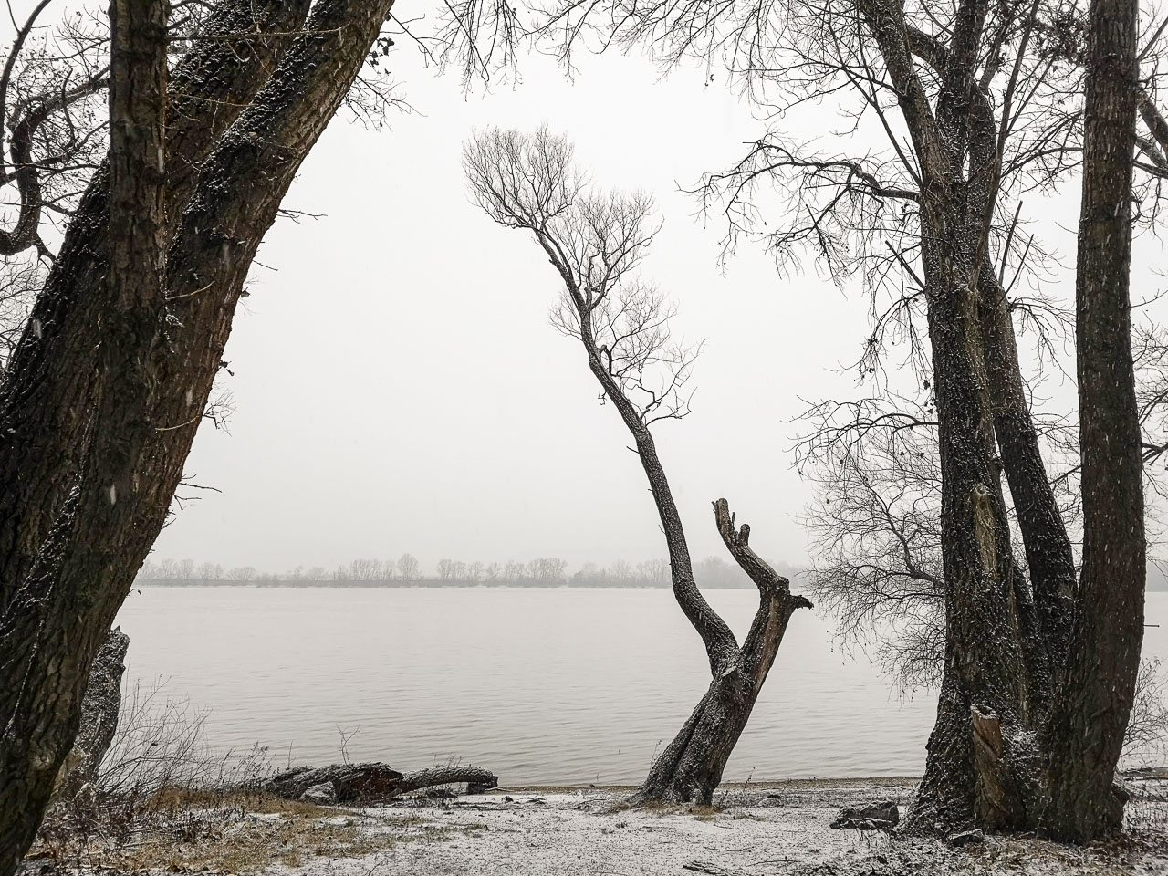 A víz mintha besűrűsödött volna: lassú, lomha hullámokkal vetődik partra. Jó hallgatni a csobbanásait, megállva ebben a hópelyhekkel takart lassúságban.
