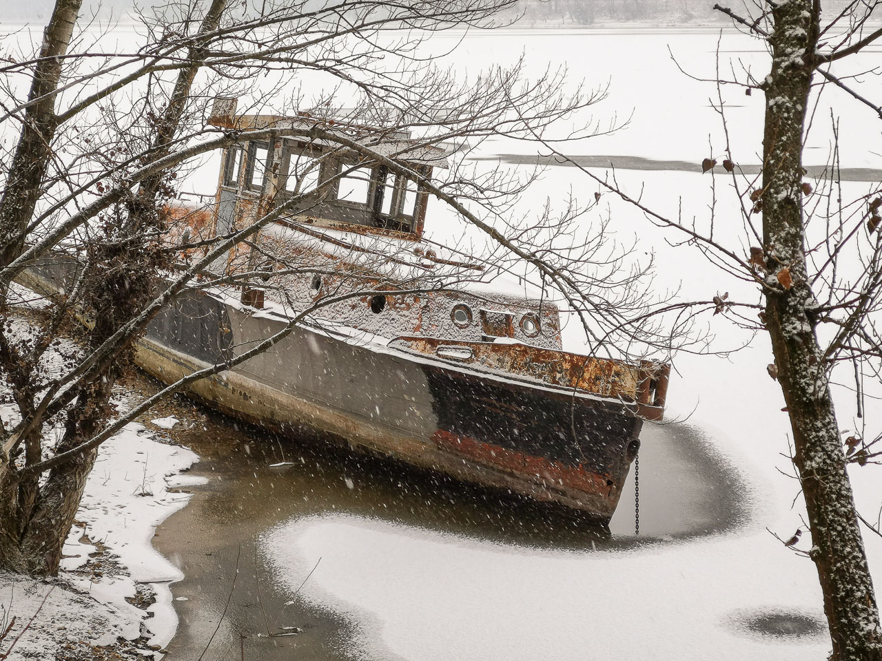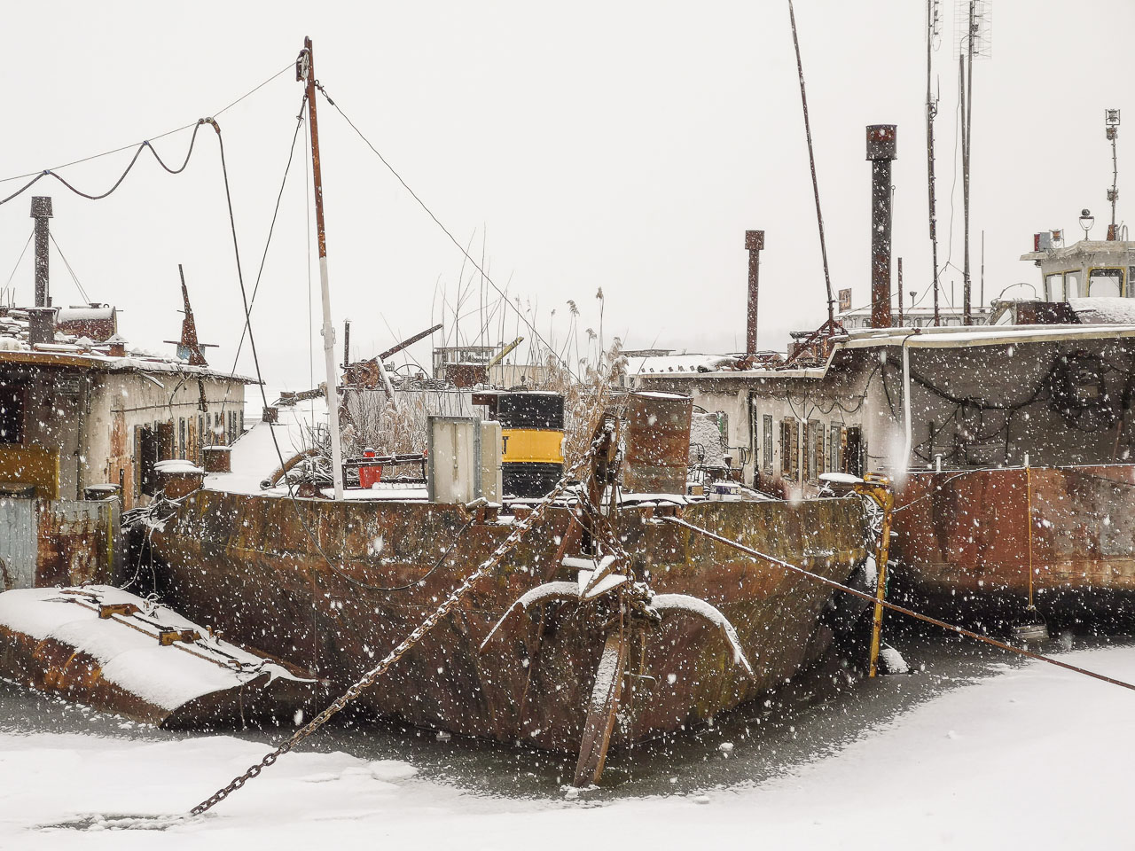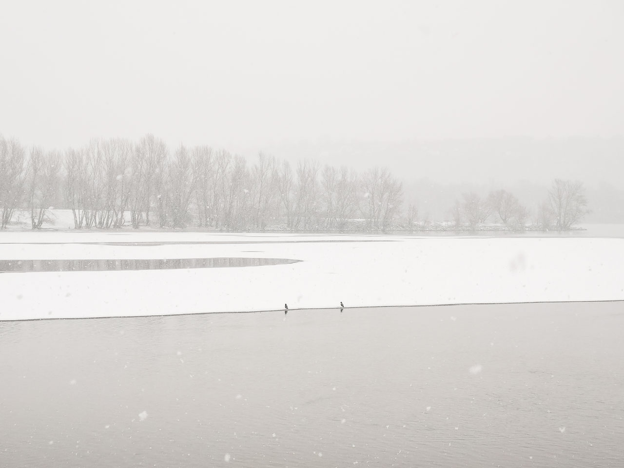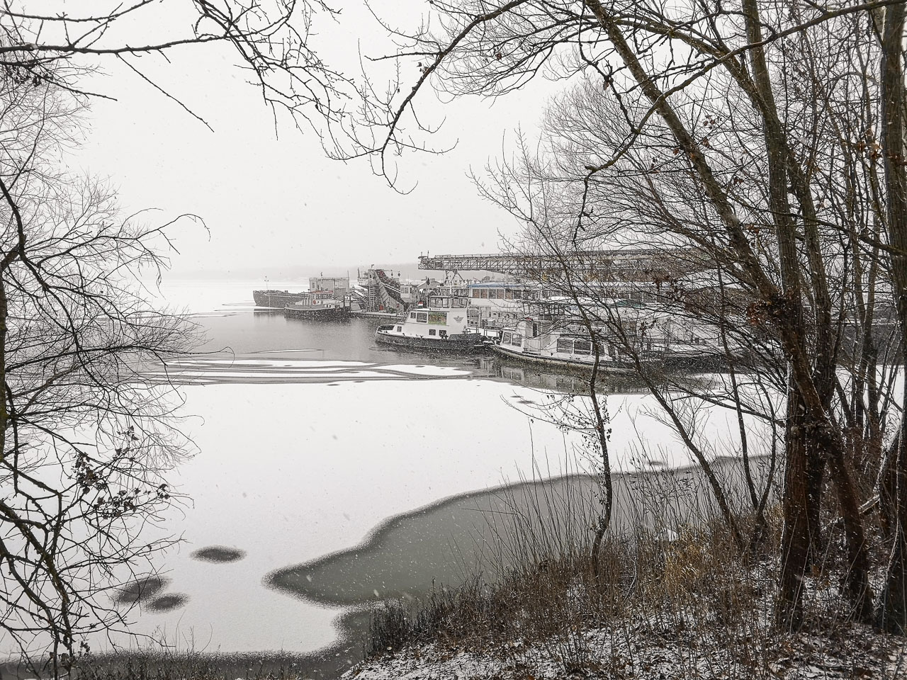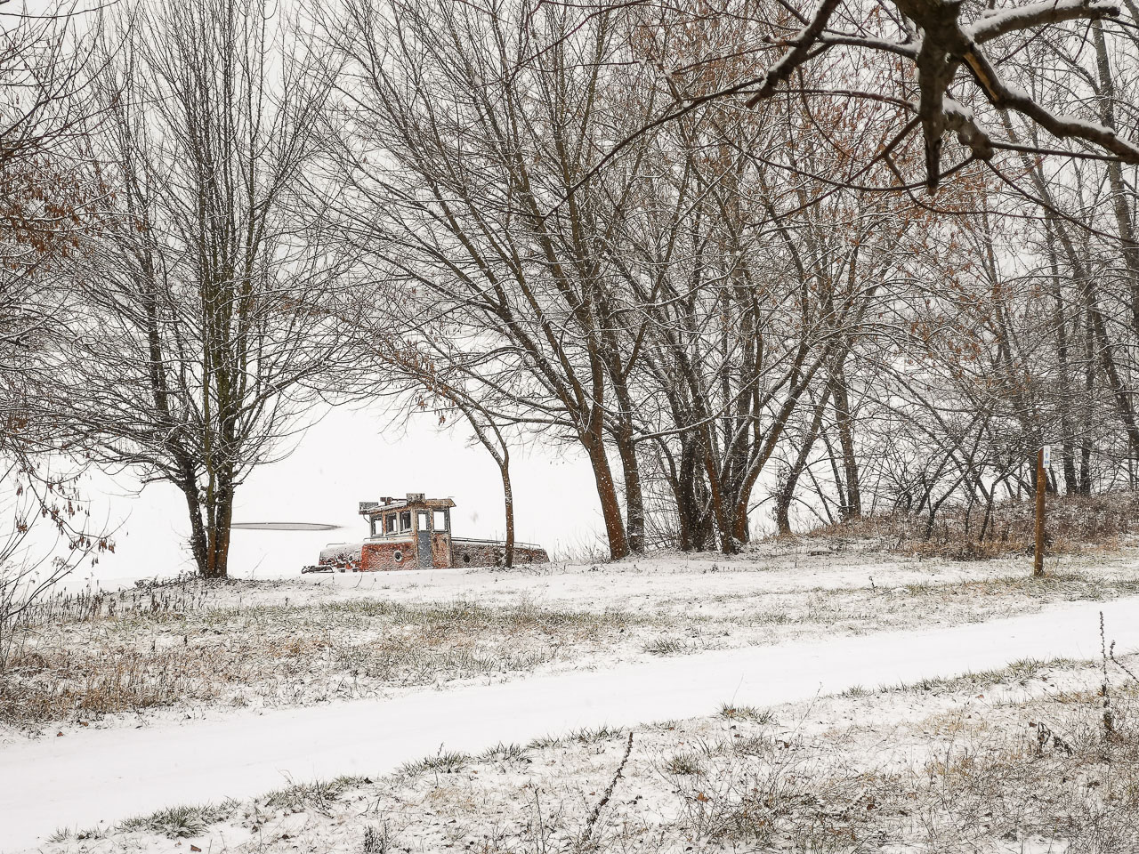 A víz mintha besűrűsödött volna: lassú, lomha hullámokkal vetődik partra. Jó hallgatni a csobbanásait, megállva ebben a hópelyhekkel takart lassúságban.