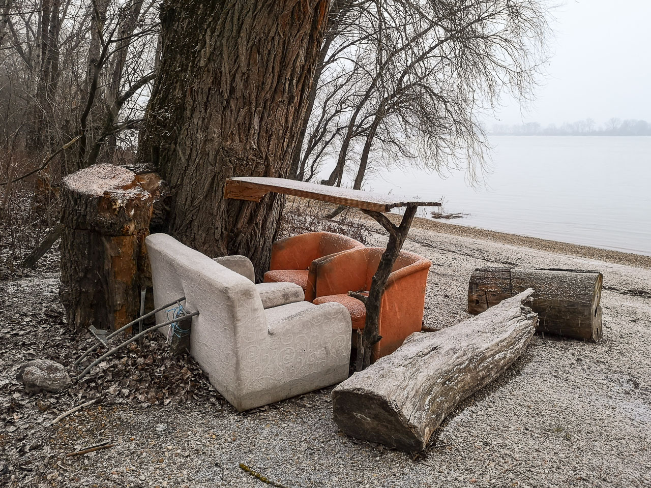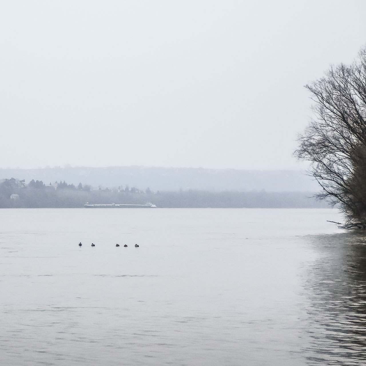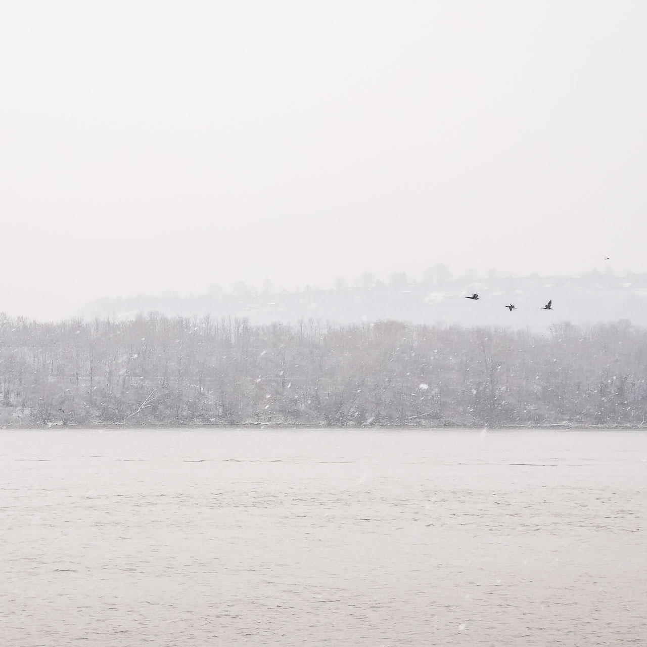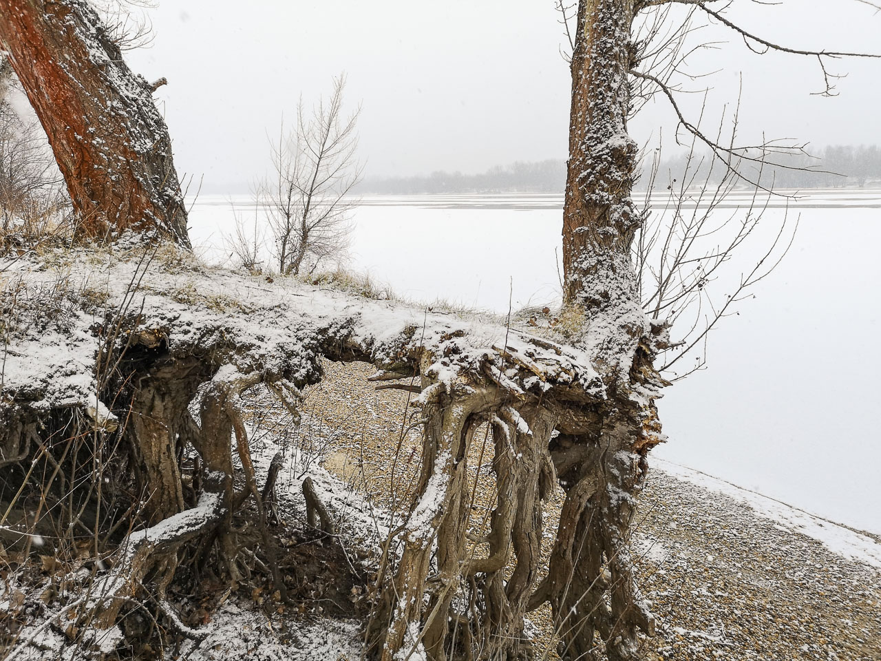 A víz mintha besűrűsödött volna: lassú, lomha hullámokkal vetődik partra. Jó hallgatni a csobbanásait, megállva ebben a hópelyhekkel takart lassúságban.