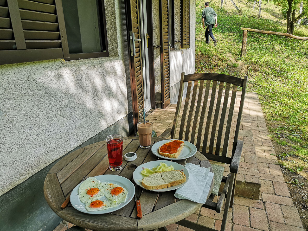 Május van, hűvösen szép idő, gyönyörű felhőkkel az égen. Megérkezem, leállok az autóval az „utcán”, senkit nem zavarok, csak én lakom itt, pontosabban most még csak a cuccaimat hordom ki. Virágzó akácfák a telkemen, mézes, számomra oly kedves illatuk a párás levegőben. Elered az eső. Felszaladok egy adaggal a domboldalon hívogató mesebeli házikómhoz. Levetkőzöm, nem akarok ázott ruhában visszaülni az autóba, csak az alsógatyám és a papucsom hagyom magamon, és föl-le szaladgálok a cuccaimmal.