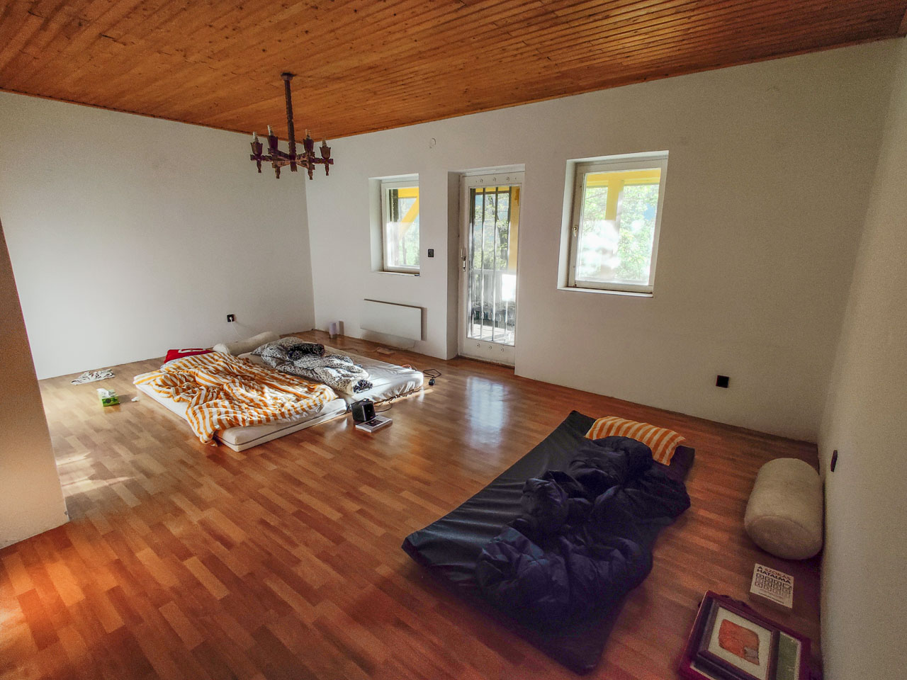 Június elseje, mostantól itt lakunk: Luca (terveink szerint minden második héten), Cimbi, akit tíz hetesen most hoztunk magunkkal Komlóról, és én.